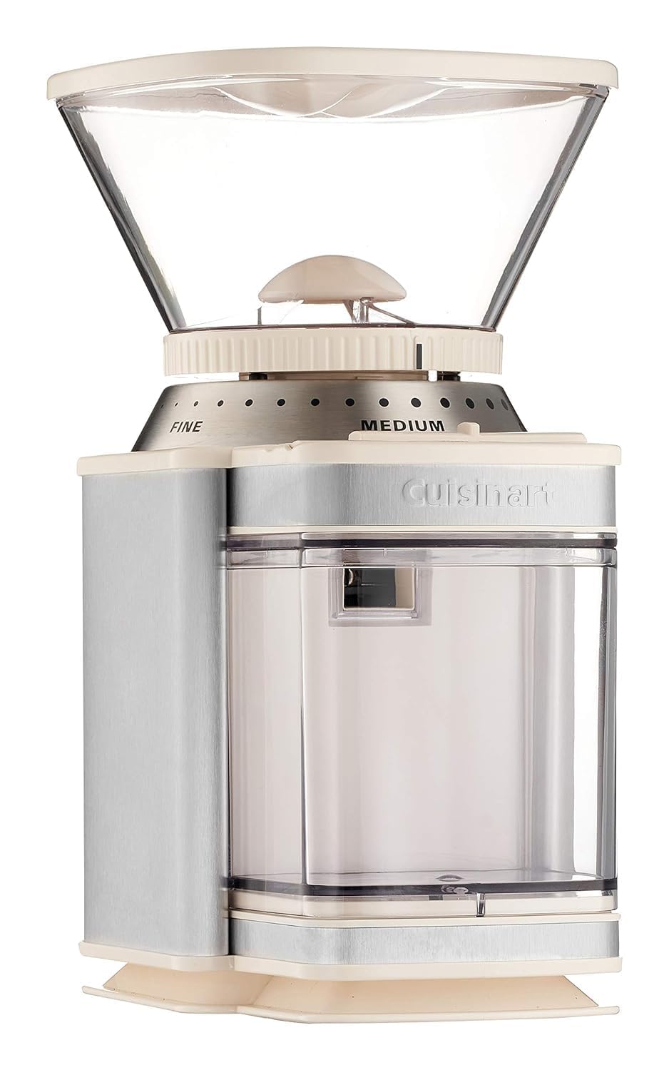 Discover the difference that freshly ground beans make to your coffee with the Cuisinart Coffee Grinder. The elegant Cuisinart flat burr grinder mill boasts 18 levels to grind from ultra-fine to extra-coarse to ensure your fresh coffee beans are ground exactly the way you prefer. With an automatic stop, your beans are guaranteed to be consistently ground to the right grade, maximizing the oils, aromas, and flavors for a better cup of coffee. The burr coffee grinder lets you grind enough coffee to make 4 to 18 cups* and store any remaining grounds in the chamber. *Cup equals approx. 5 oz. (varies by brewing technique). The one-touch power bar is separate from the coffee bean grinder unit and complemented by an electric timer that automatically shuts off the unit when your grind cycle is complete. The BPA-free Cuisinart Coffee Grinder comes with a limited 18-month warranty.