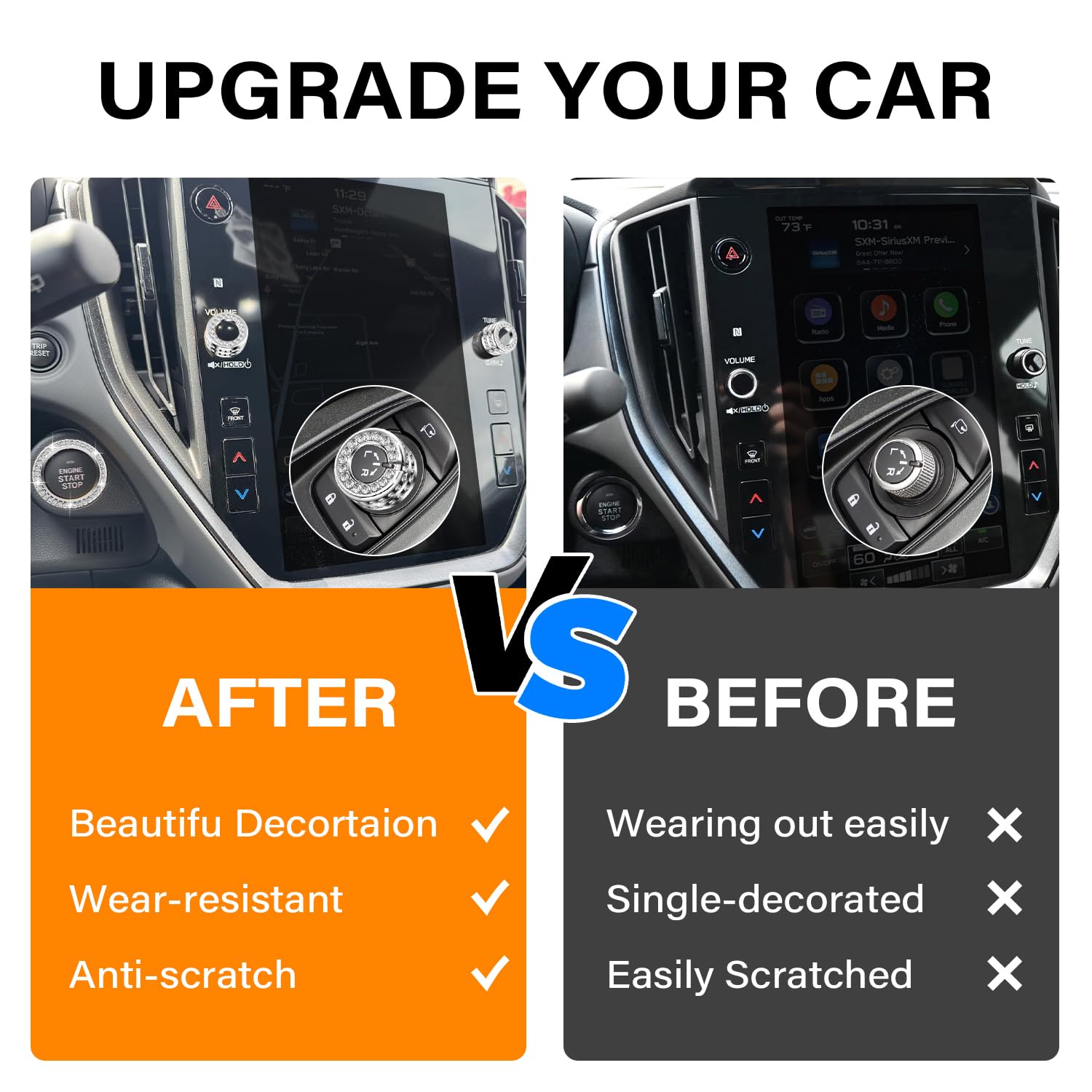 Custom fit: Car Volume Tune Knob Covers and Engine Start Stop Button Outer Ring Accessories are perfectly fit for 2024 2025 2026 Subaru Crosstrek & 2024 2025 2026 Impreza Accessories (Not for Base), 2025 2026 Subaru Forester (Not for Base), 2020-2024 2025 Legacy & Outback, 2022-2023 2024 2025 WRX, 2023 2024 2025 Ascent (Not for Base and Premium)