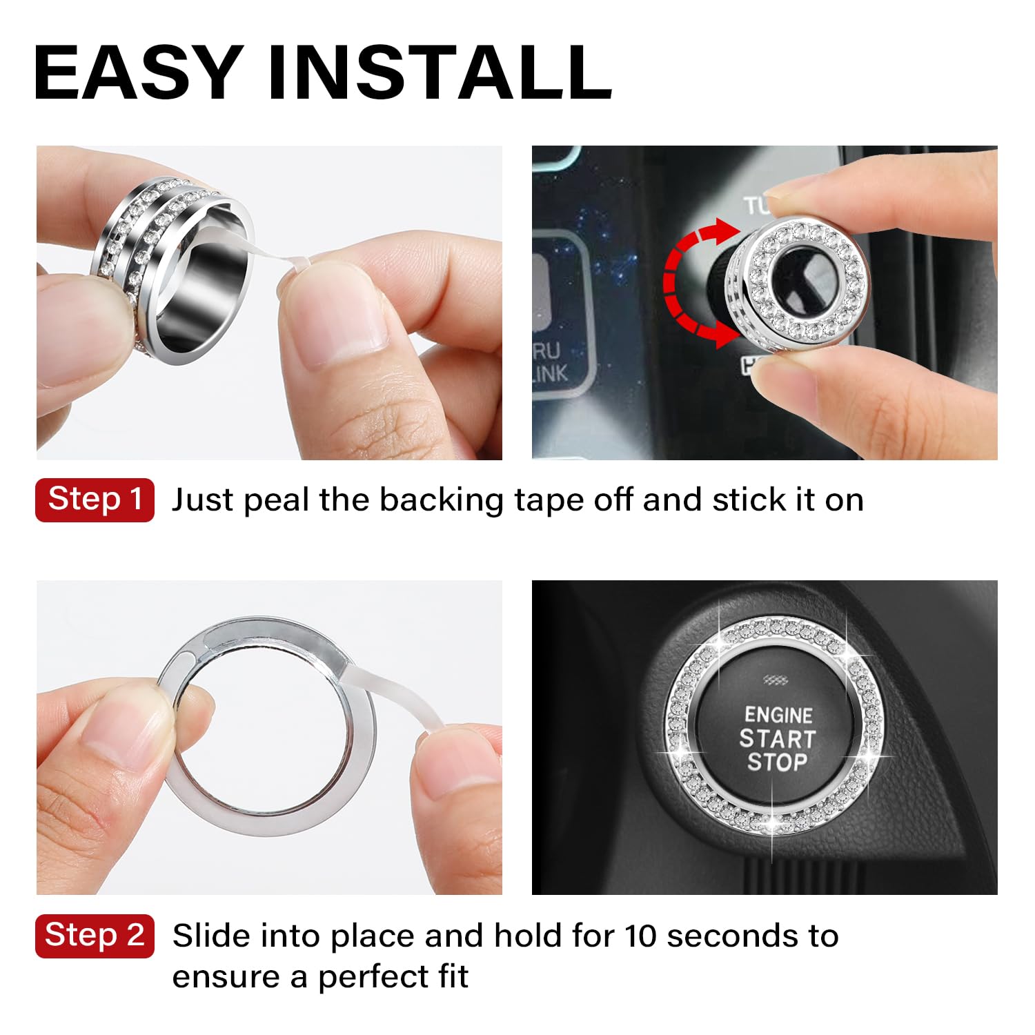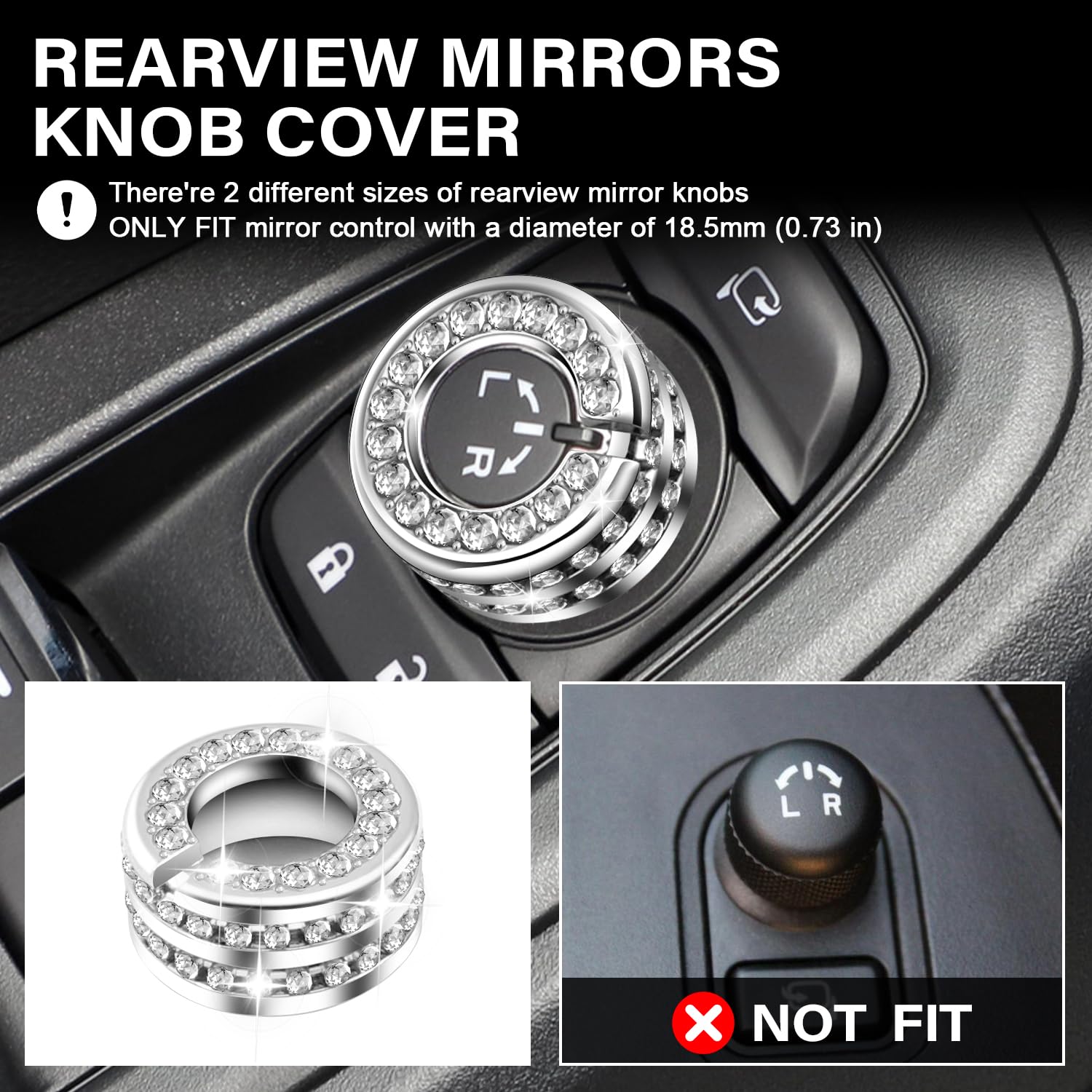 What You Get: 4 pcs/set, includes 1pc engine start stop button outer ring, 2pcs volume tune knob covers, 1pc rearview mirror contorl knob cover. Note: There're 2 different sizes of rearview mirror knobs. Only fit mirror control with a diameter of 18.5mm (0.73inch)