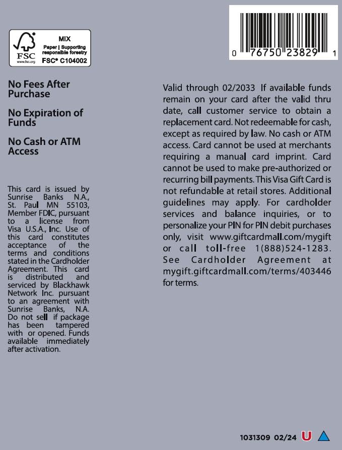 To protect the money loaded to this card, the gift card recipient should register with Visa. To register your card, view FAQ’s, or find more information about your Visa gift card, please visit mygift.giftcardmall.com.
