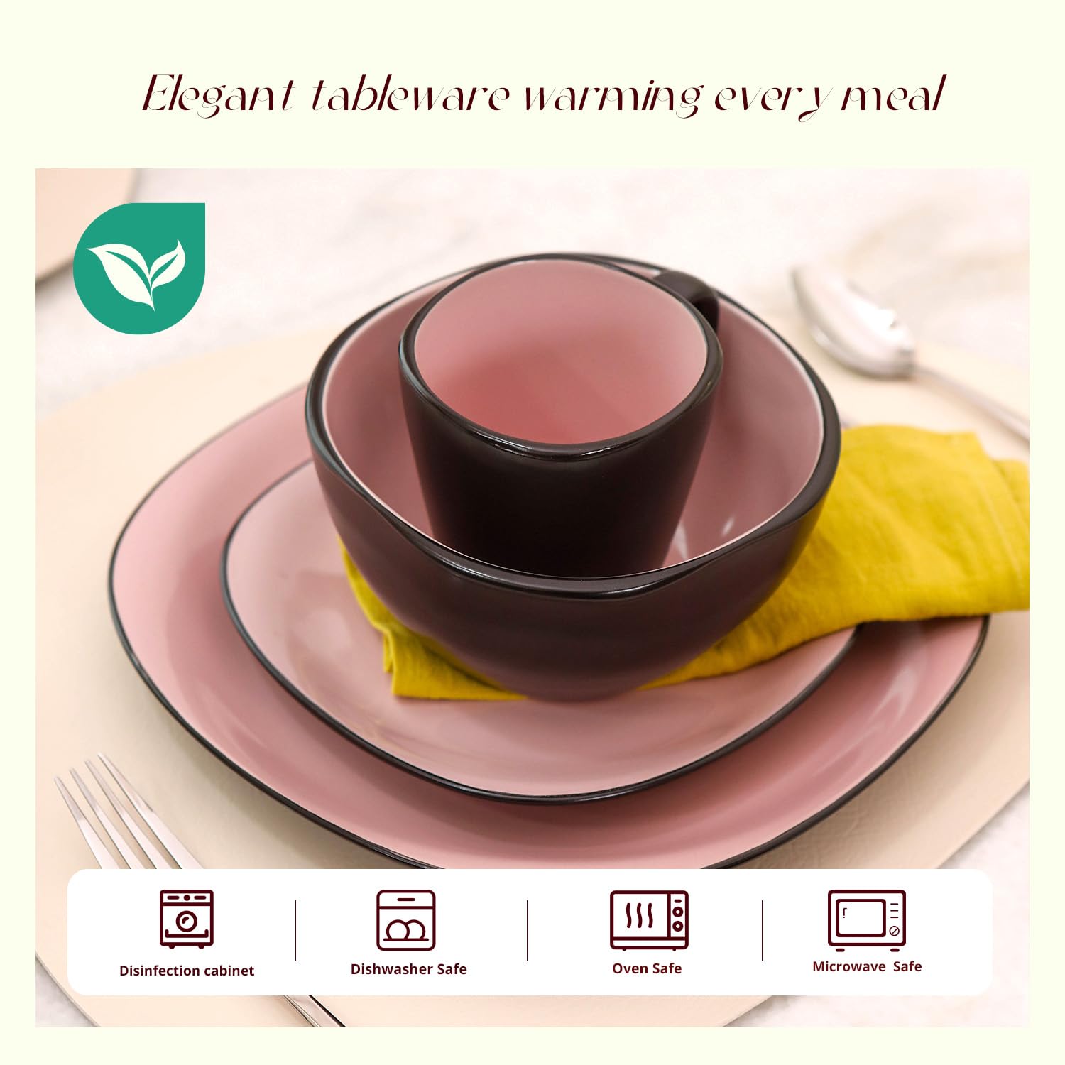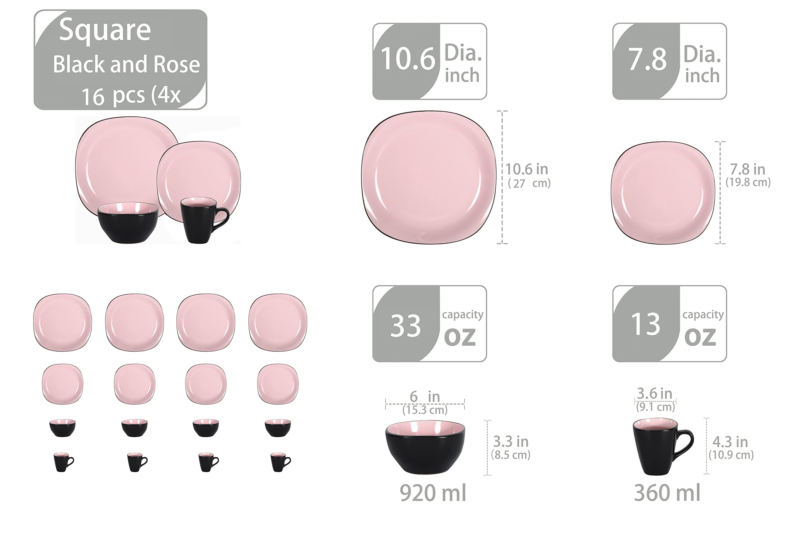 Square Shape with Two Tone Glaze: Square Shape with Inside Shiny Rose Colorful glaze and Matte Black Outside, make your table colorful, modern, natural and attractive