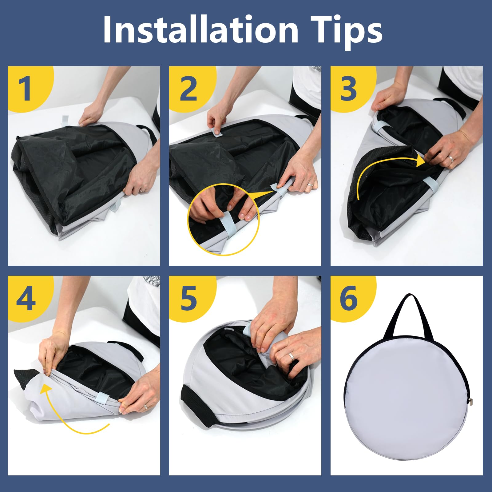 Easy to carry:the laptop sun shade for working outside can be folded into a small round bag for easy carrying in a schoolbag or suitcase