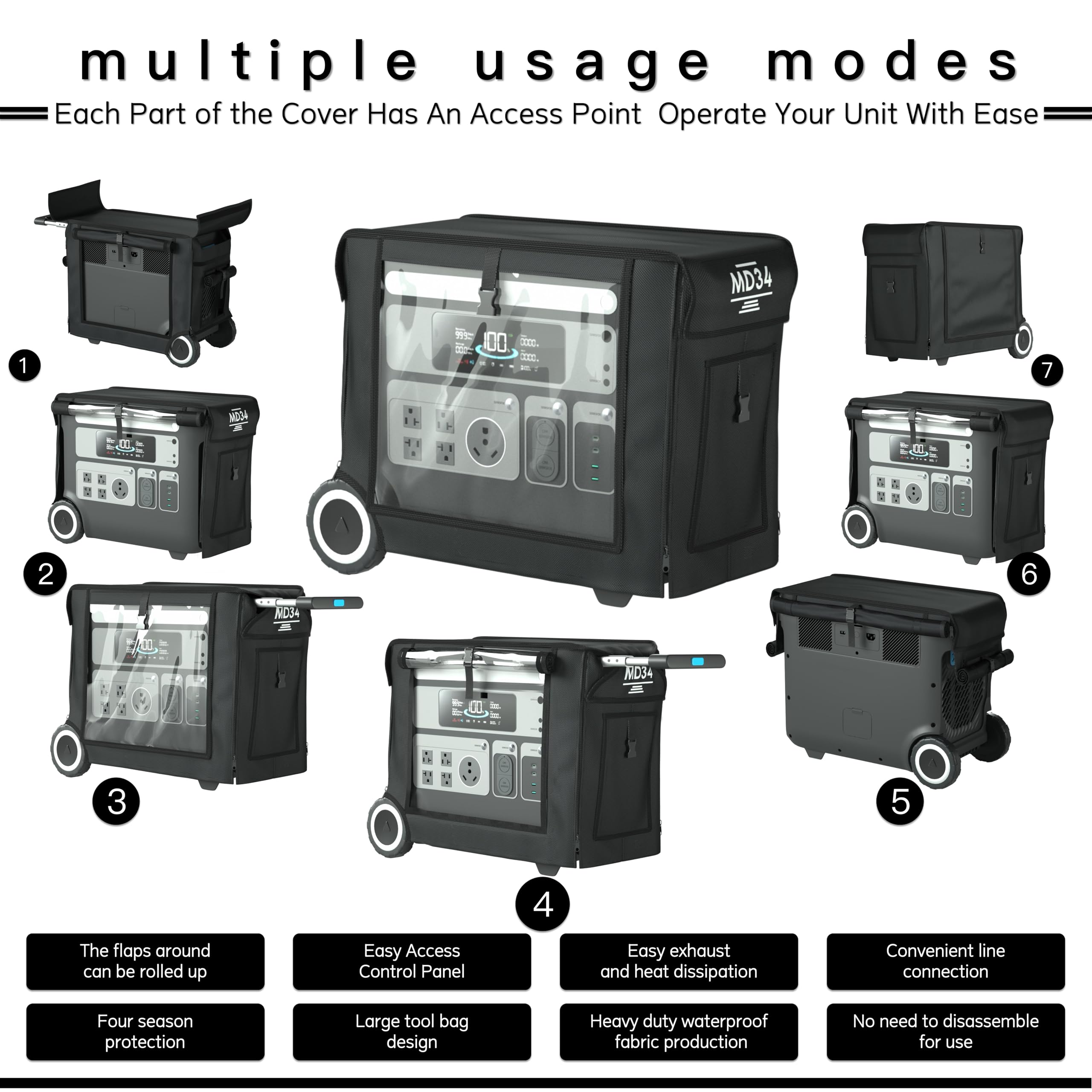 Comprehensive protection: The portable power station protective cover is precisely fitted and can be rolled up in all directions, making it easy to use. The sturdy metal zipper and waterproof zipper layer provide all-round protection, wear-resistant, waterproof, and dustproof, protecting your portable power station from the impact of harsh weather.
