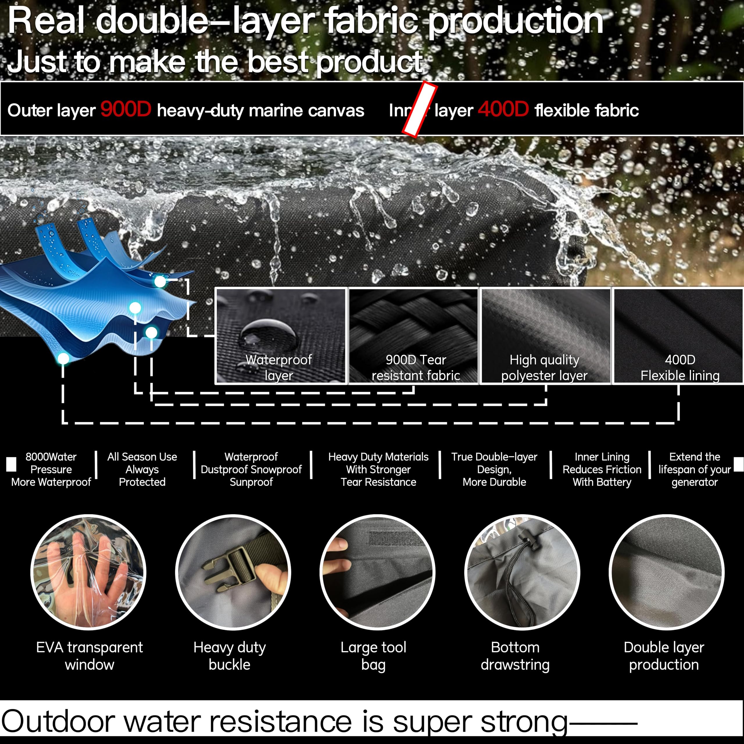 Selected materials: The battery protection cover is made of encrypted 900D heavy-duty PU Oxford cloth and 400D nylon double-layer lining. Using genuine double-layer fabric, it has strong tear resistance, durability, waterproof zipper, all black electrophoretic process, smooth two-way pulling, and is flat and not stuck.