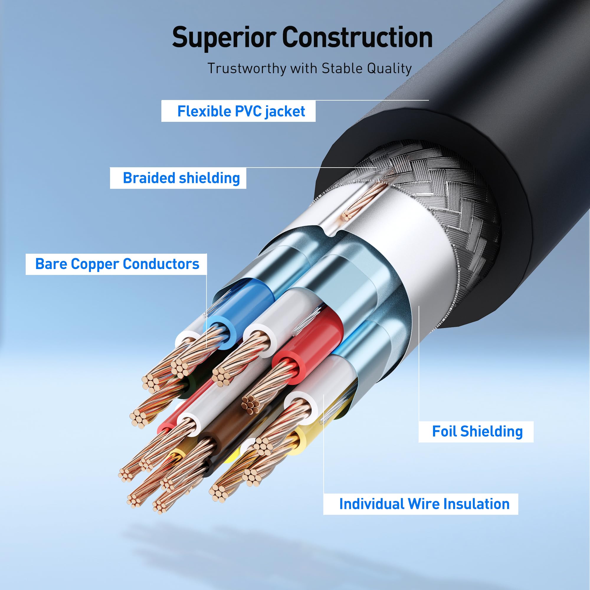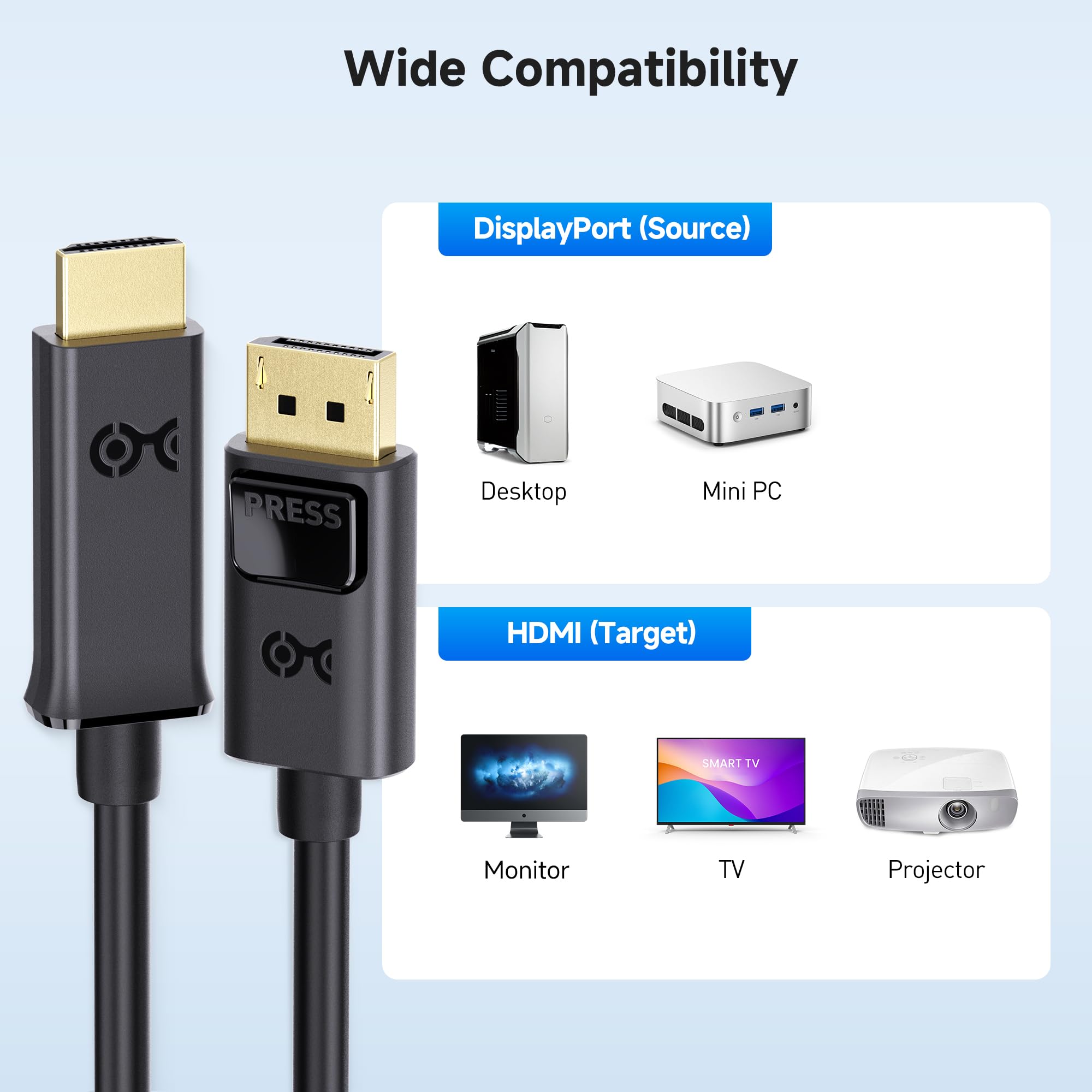 Durable Build for Stable Signal: Gold-plated connectors, bare copper conductors, and foil & braid shielding combine in this Display Port to HDMI cable (DP to HDMI adapter cable, Display Port to HDMI cord) to deliver superior performance, reduce electromagnetic interference, and ensure stable, reliable connectivity.