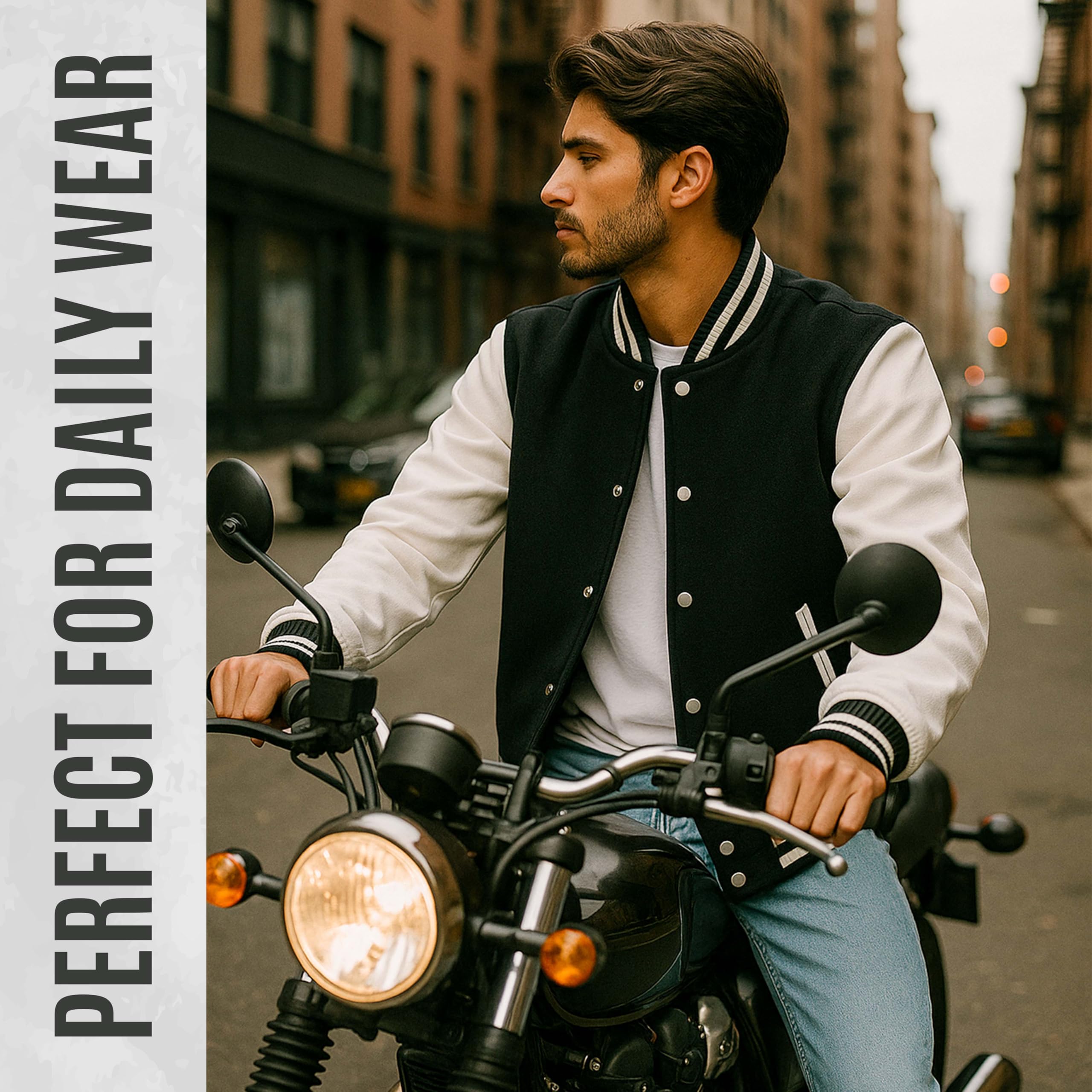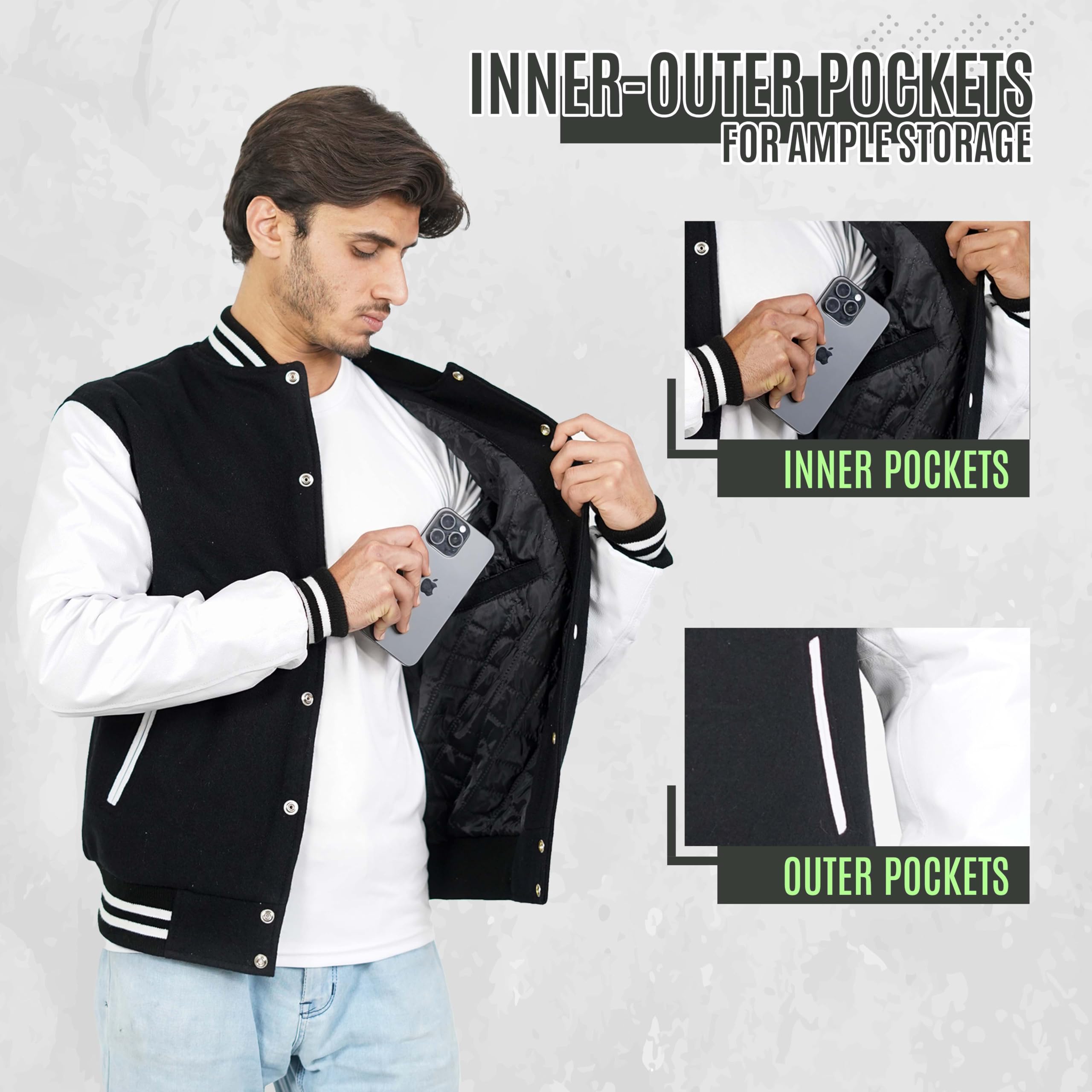 Ample Storage: Equipped with both inner and outer pockets, this mens varsity jacket provides sufficient storage for your essentials like your phone, wallet, and keys, so you can carry what you need with ease.