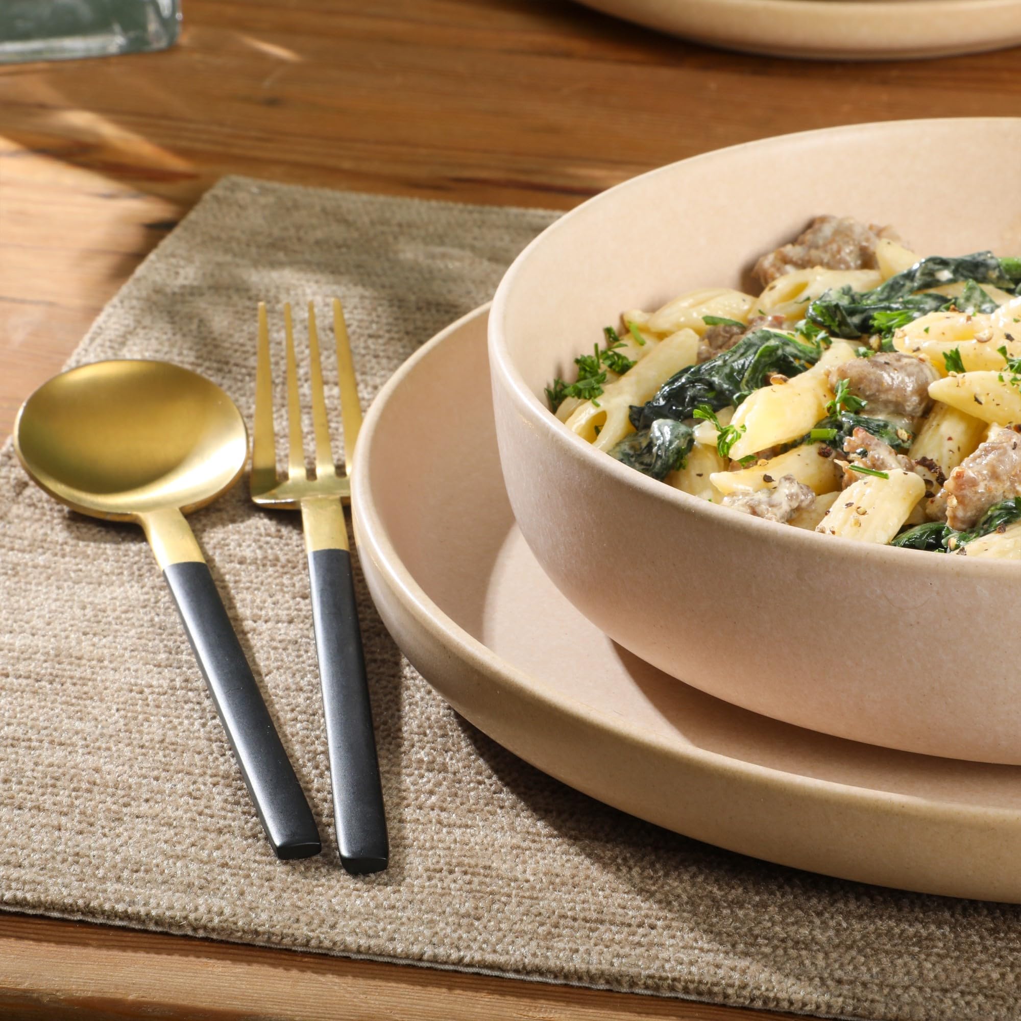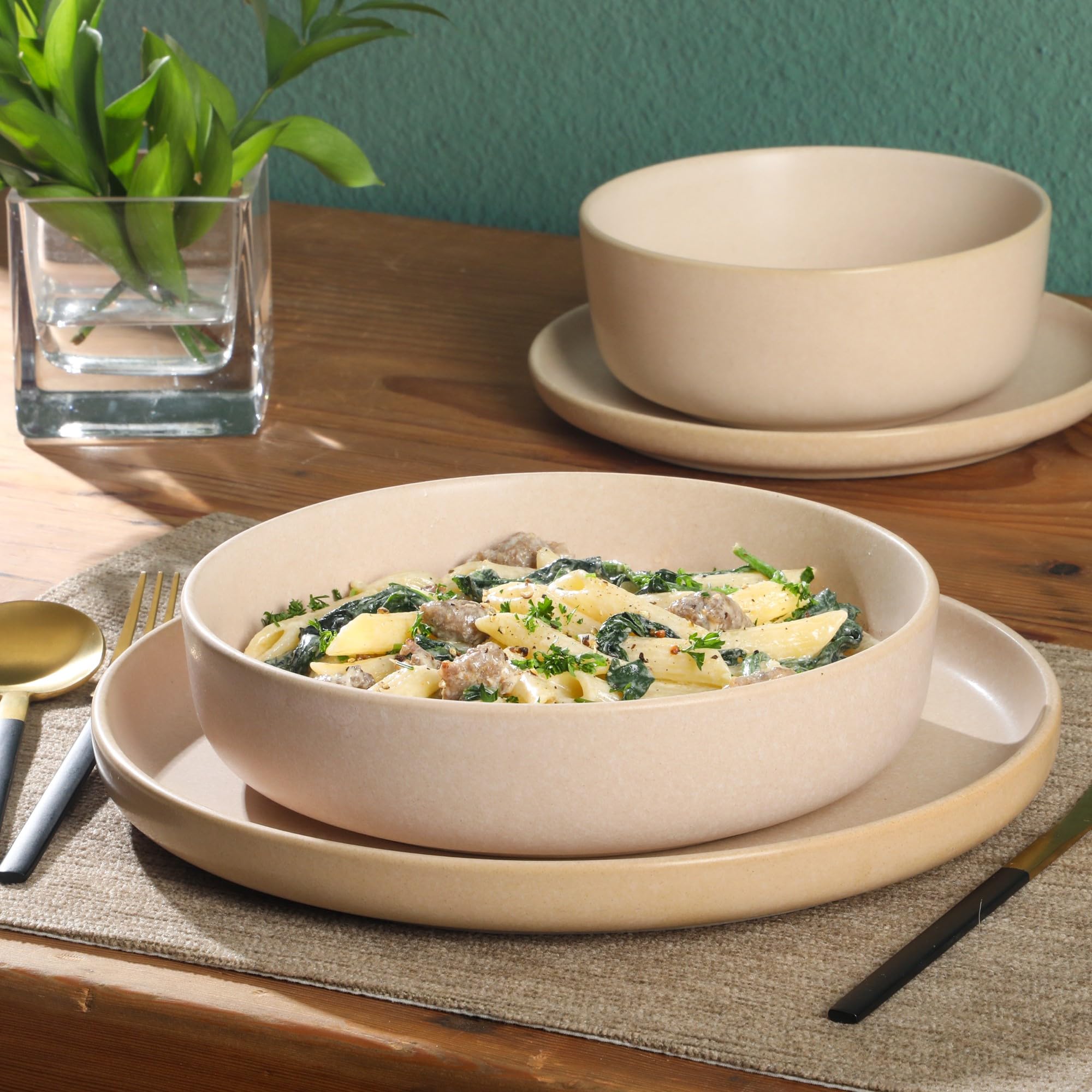 WEAR-RESISTANT STONEWARE: Sturdy stoneware plates and bowls crafted to serve meals every day for any style, occasion, and budget. Fired at high temperatures to create a non-porous surface, this dinnerware set ensures strength and durability for long-lasting use.
