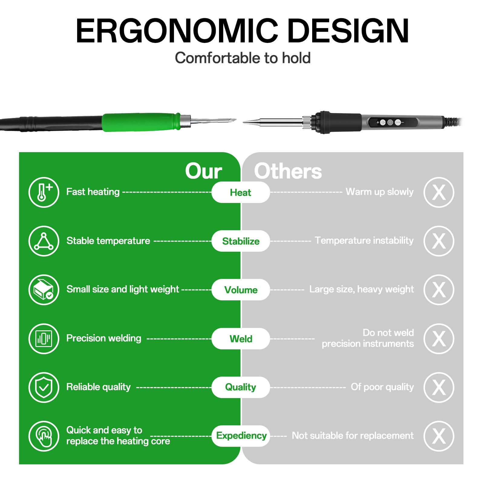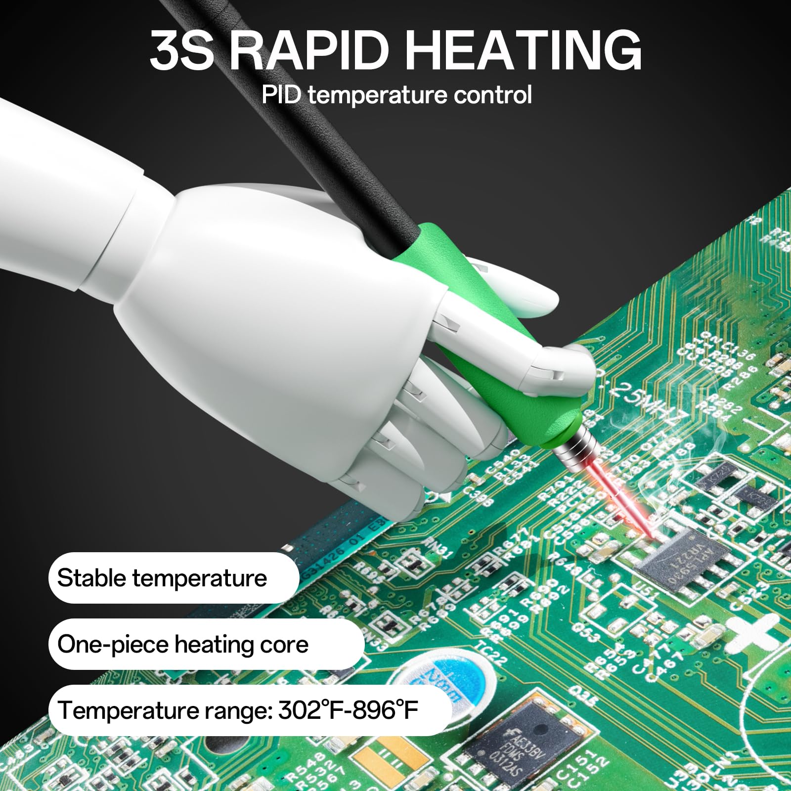 【C210 Sooldering Iron】 C210 soldering irons for soldering micro and standard-sized components, 3s fast heating, temperature adjustable from 302-896°F, one-piece heater core, compatible with C210 (standard), C115 (optional), C245 (optional) heater cores, easy replacement