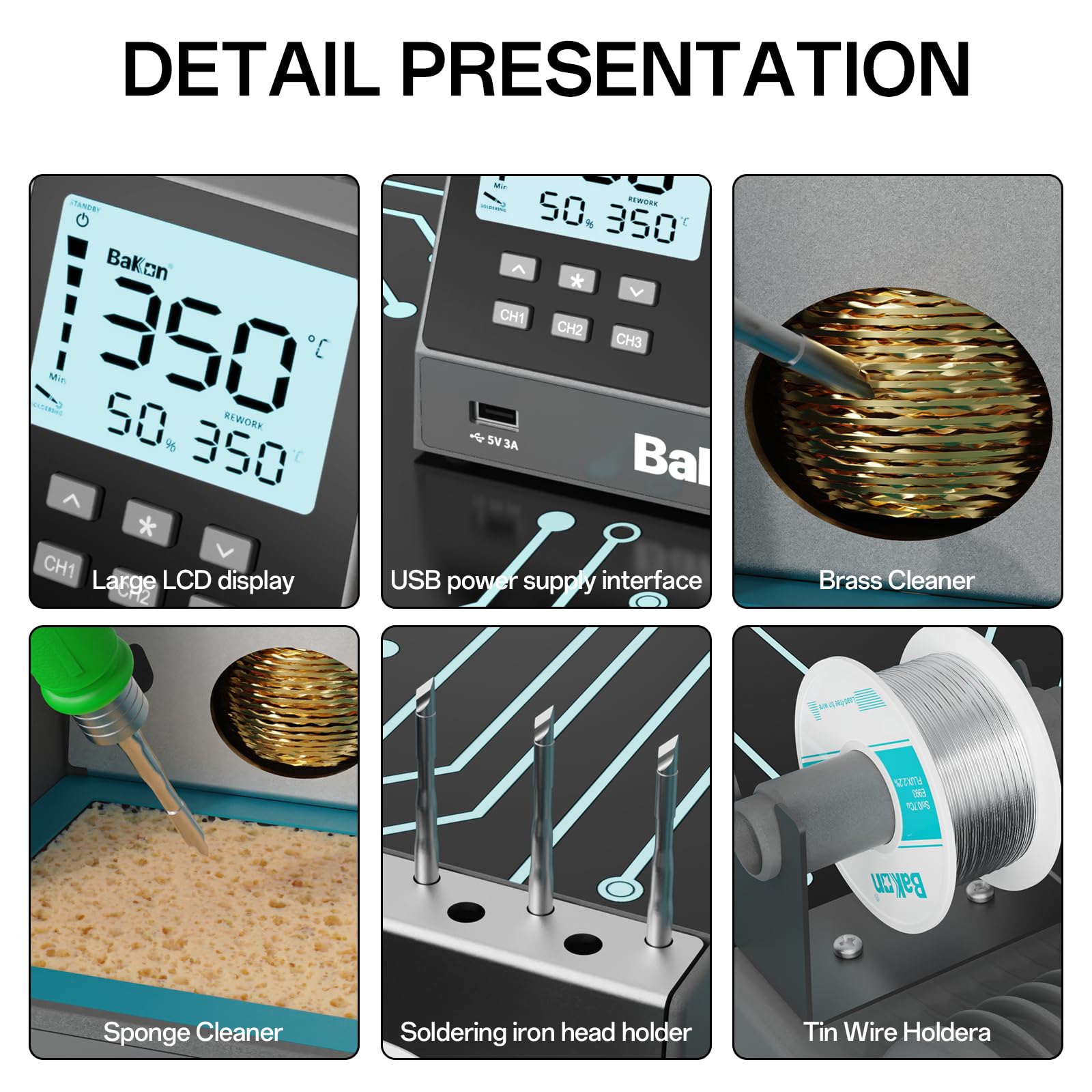 【Microcomputer Control】BK601Pro soldering station is designed with the latest drive circuit, high power ceramic one-piece heater core and professional-grade built-in transformer can provide stable voltage to the soldering iron and maintain a stable temperature, it is ideal for professional soldering, precision electronics, laboratory, home and hobby, DIY and circuit board repair.