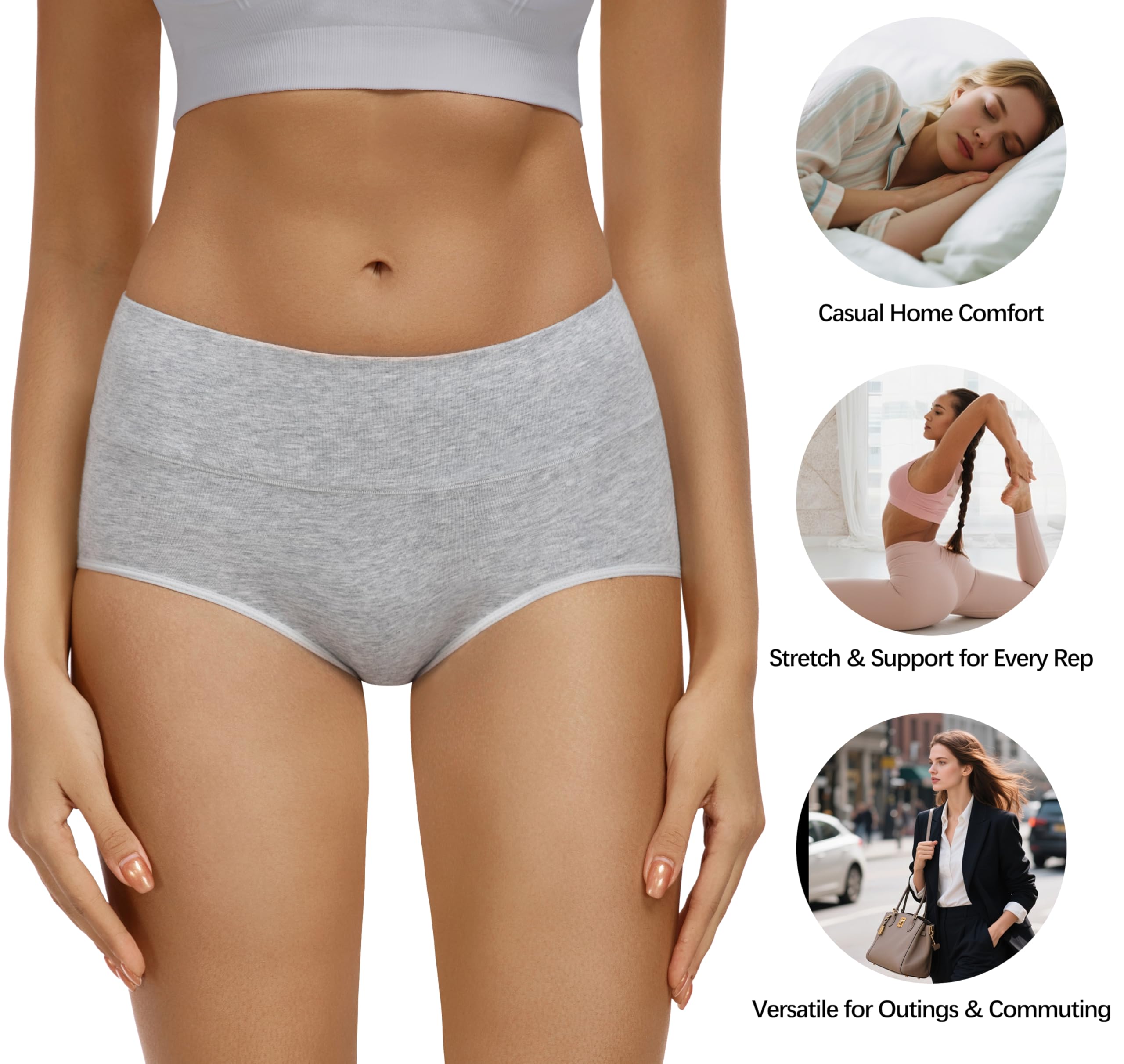 Soft Cotton Stretch & No Muffin Top: Premium cotton fabric with stretch offers full back coverage with no pinching, binding, or panty lines. Comfy high-rise design provides gentle tummy support to smooth muffin tops