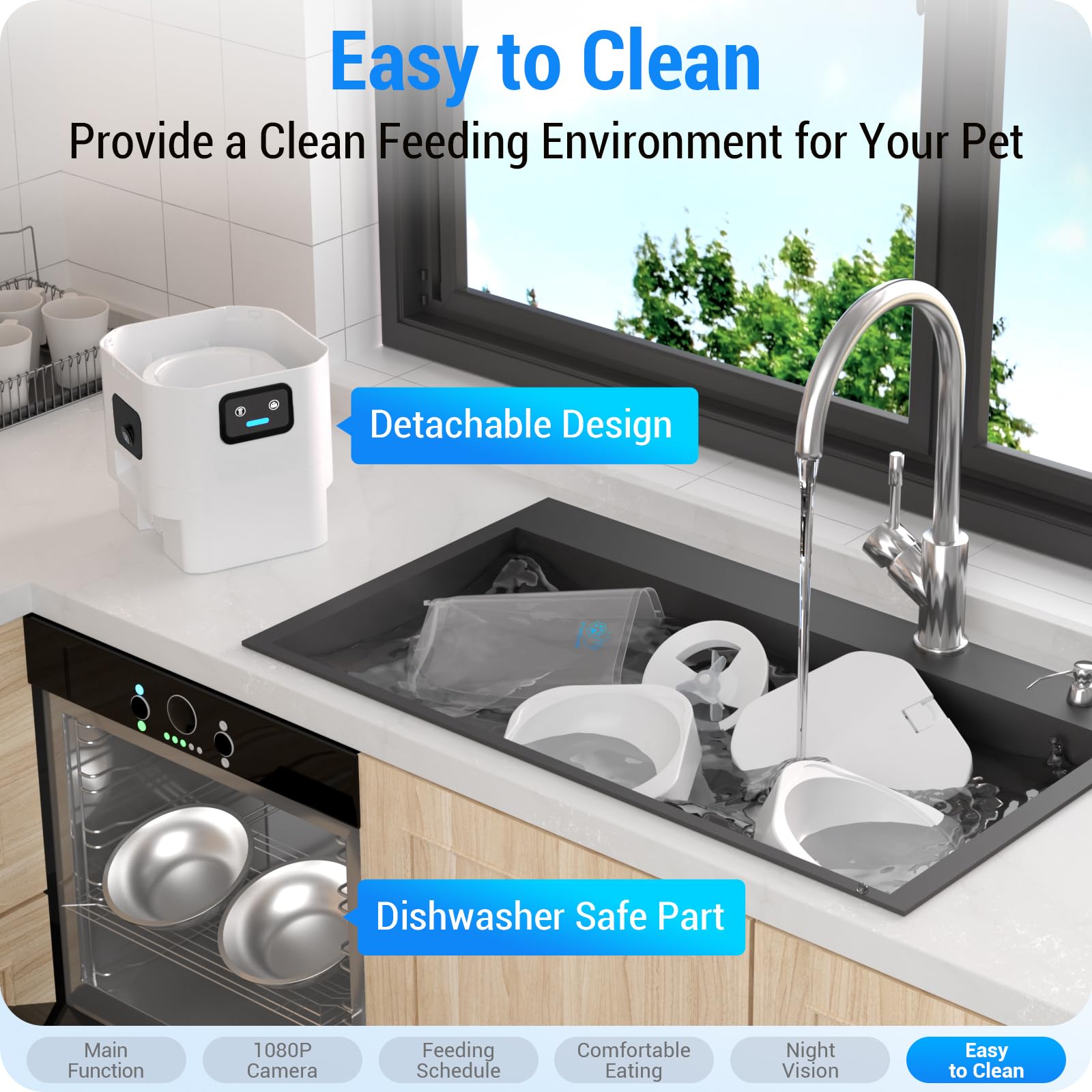 Detachable Design : Our automatic cat food dispenser is engineered with a fully detachable structure for superior hygiene. The BPA-free food hopper and high-grade stainless steel bowl can be completely removed for a deep clean in every corner. By ensuring a residue-free environment, you’re not just feeding your pet—you’re protecting their sensitive skin and overall health.