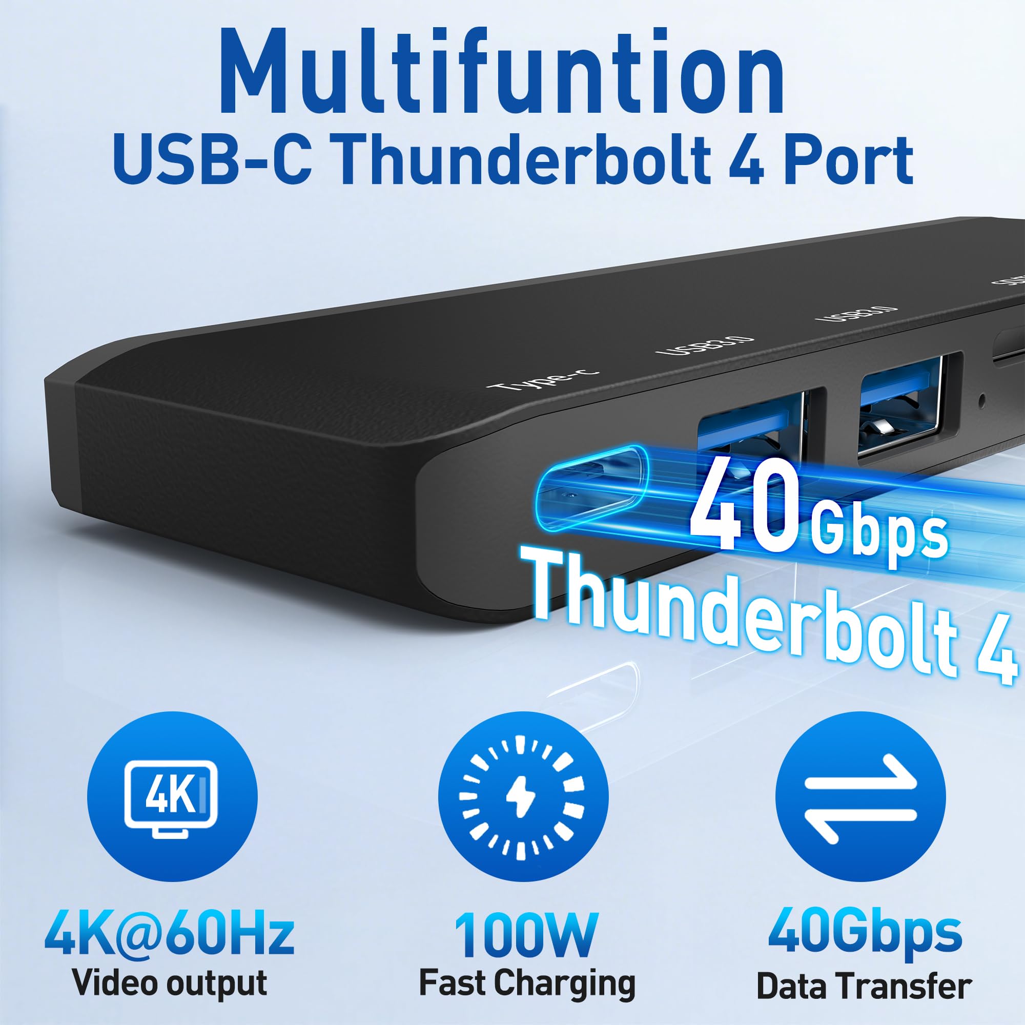 Designed for Surface Pro 12: Unlock the full potential of your Surface Pro 12 (2025)! This dedicated 7-in-1 Surface Pro 12 inch docking station expertly transforms dual USB-C ports into a comprehensive workstation. It features a 4K@30Hz HDMI port, a Thunderbolt 4 port (40Gbps Data, 4K@60Hz Display, 100W PD Charging), two 5Gbps USB 3.0 ports, 480Mbps SD/TF card readers and a 3.5mm audio jack. Everything you need for a powerful desktop experience, all in one sleek, space-saving hub.