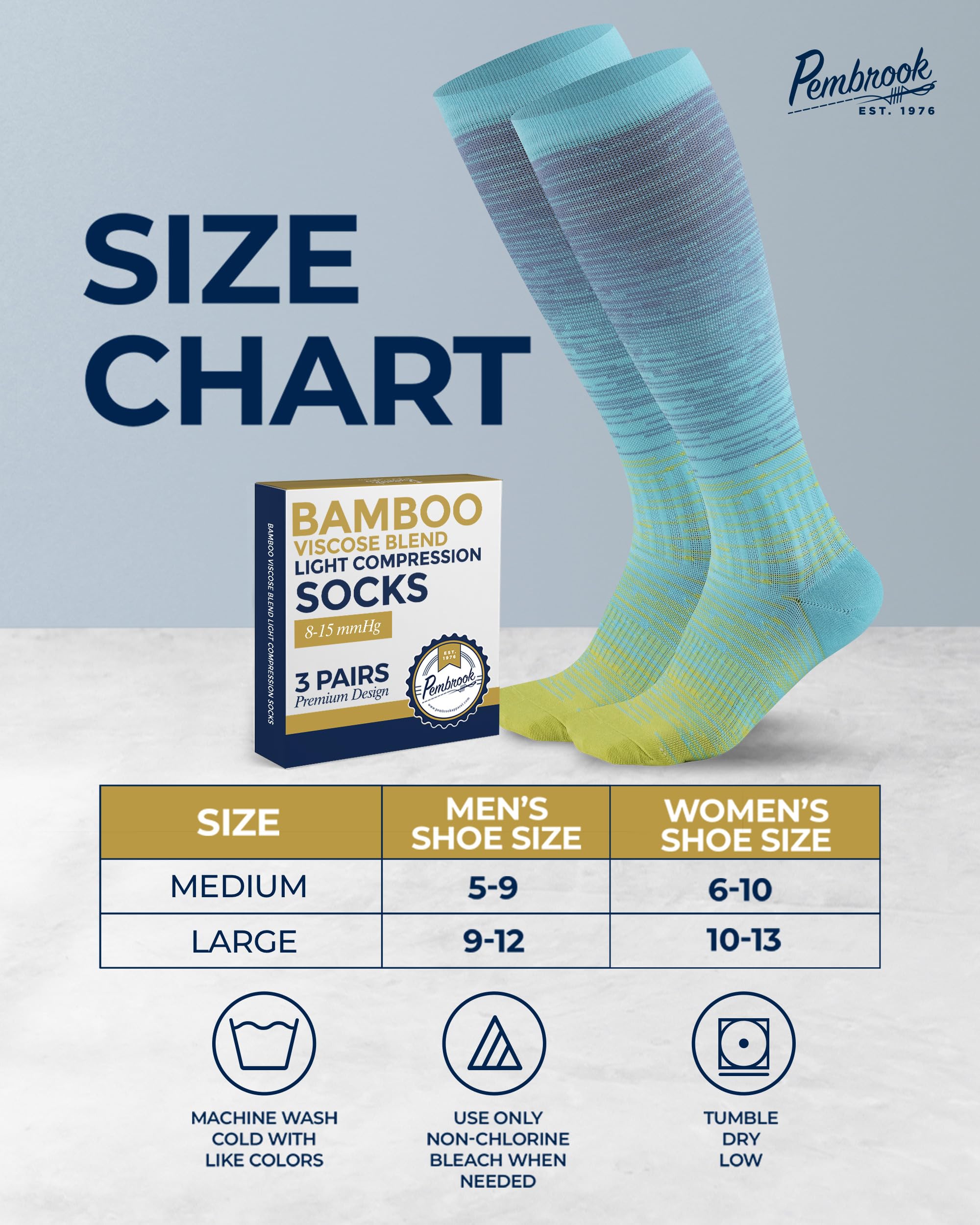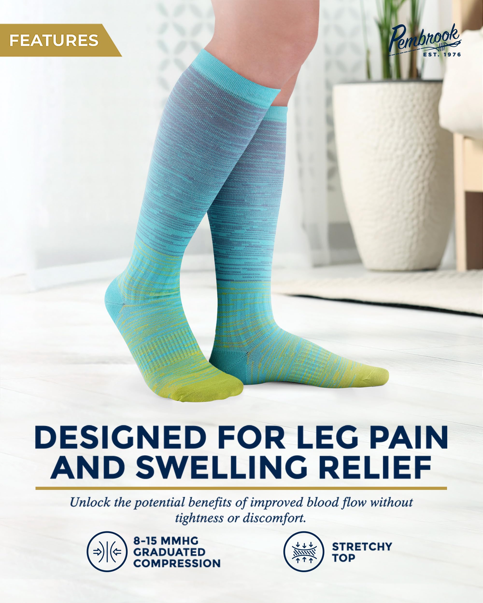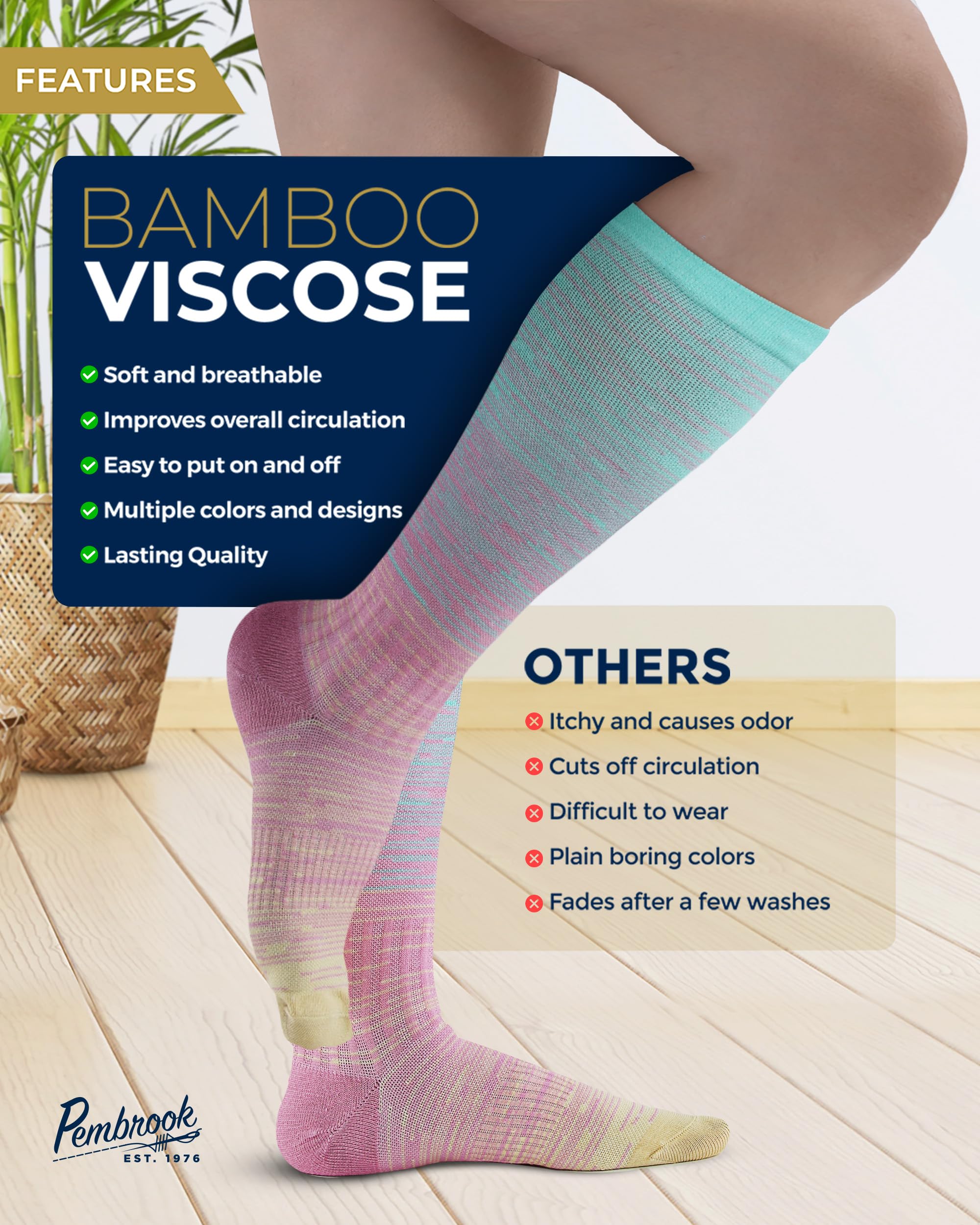 Premium Material - Pembrook mens and womens light compression socks feature viscose derived from bamboo. With moisture-wicking and breathable properties, they are designed to keep you fresh and cool and help regulate temperature.