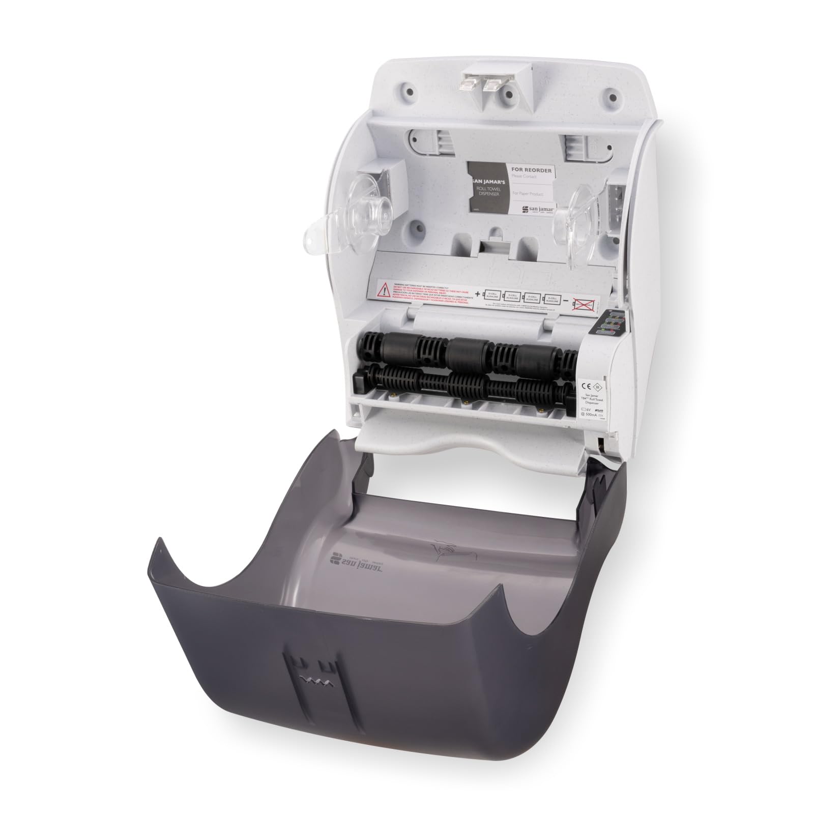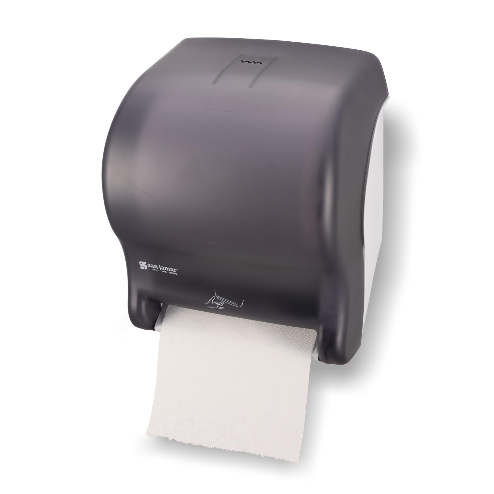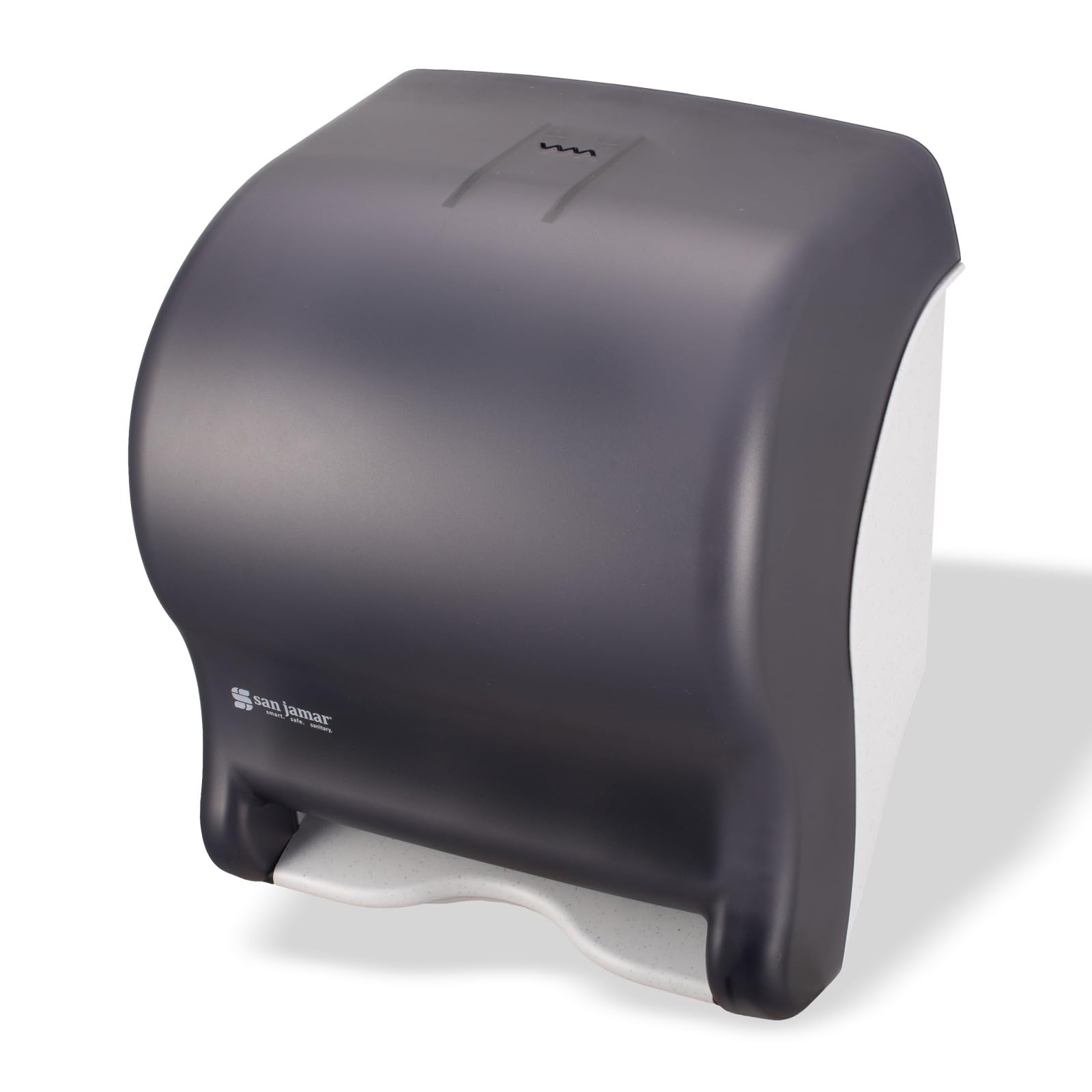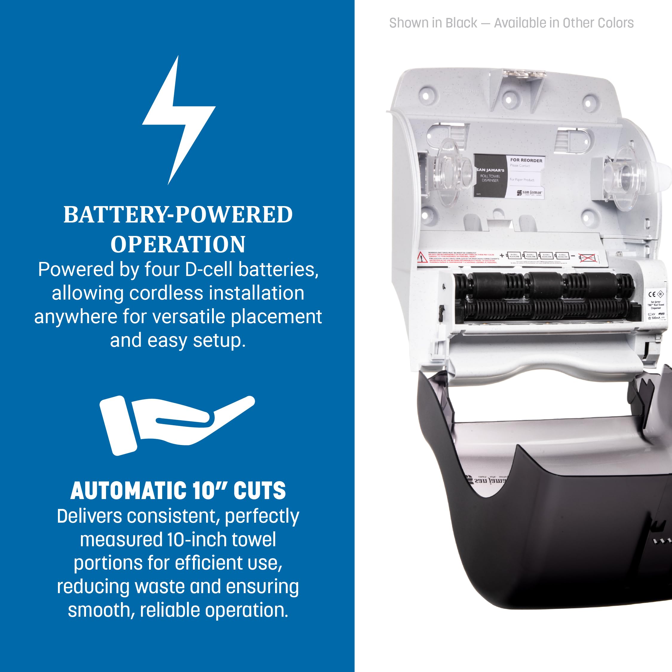 The San Jamar Classic Tear-N-Dry Paper Towel Dispenser is your ultimate solution for efficient paper towel dispensing in bathrooms, kitchens, and restaurants. Experience consistent delivery of 10” standard paper portions for all roll qualities, ensuring a seamless workflow without any waiting time, keeping your operations running smoothly. Crafted with transparent plastic, the dispenser's cover is both durable and theft-proof, allowing users to effortlessly monitor the roll status at a glance, providing peace of mind and convenience. Its compact construction is tailor-made for tight-fitting spaces, effectively reducing transportation costs while maximizing efficiency, making it an ideal choice for various environments where space is a premium. With easy mounting capabilities, this dispenser effortlessly attaches to most wall surfaces, offering convenient access to towels whenever needed, promoting ease of use and accessibility in any setting. Operating on just (4) D Cell batteries, this dispenser requires minimal maintenance, ensuring long-term functionality and reliability without the hassle of frequent battery replacements, providing added convenience for busy establishments.