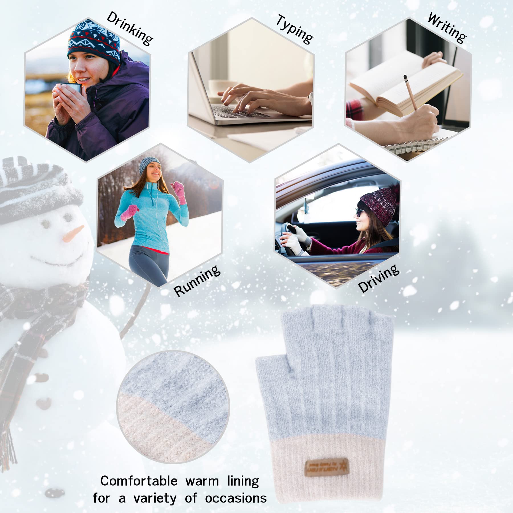 [UNRESTRICTED FINGER MOBILITY]: Our fingerless knitted gloves for women feature a practical half-finger design for maximum dexterity. You can seamlessly use your phone or other touchscreen devices while wearing these womens gloves, without the need to take them off. These womens fingerless gloves are perfect for typing, driving, working, studying, and a variety of daily activities.