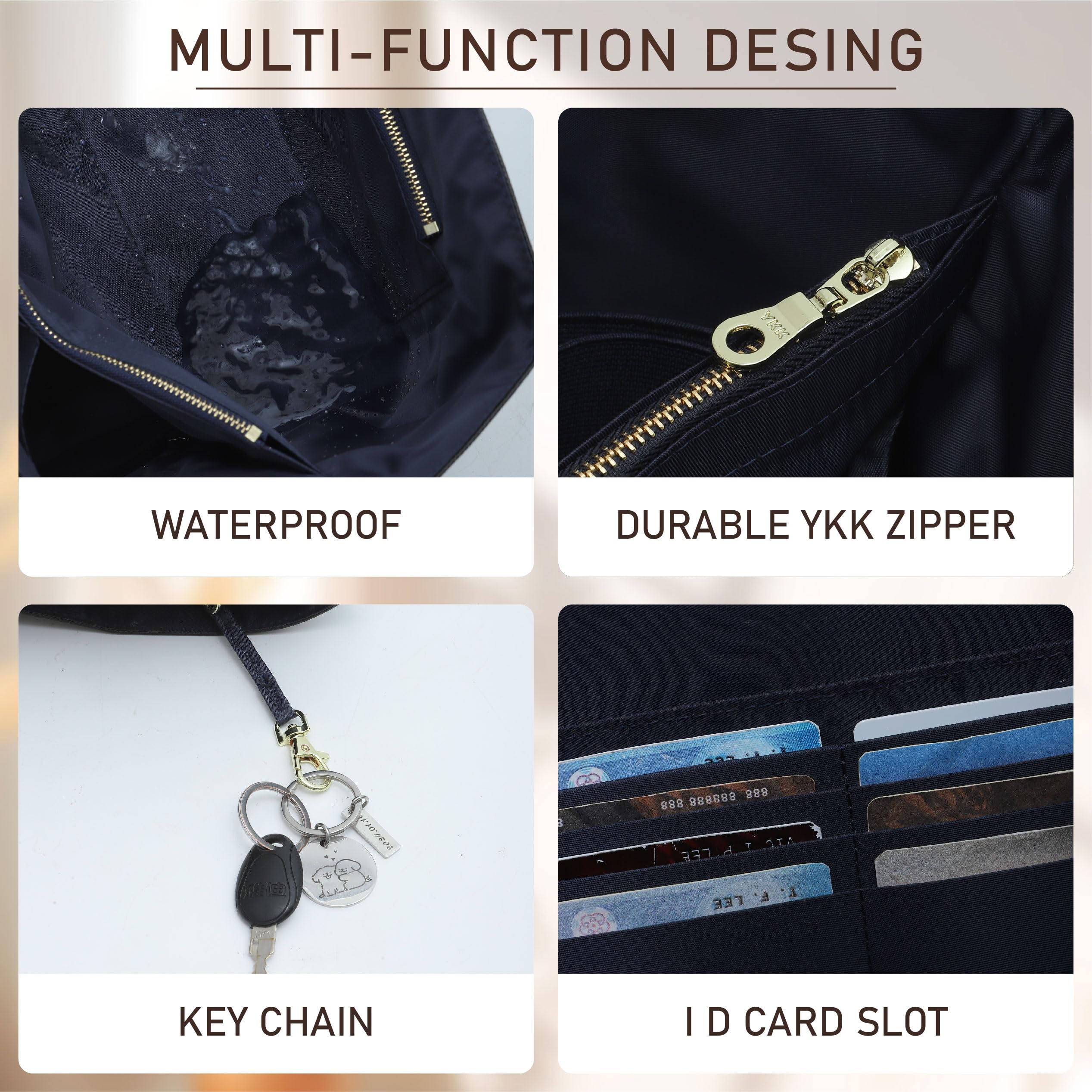 MULTI-COMPARTMENTS: Featuring 8 compartments, 8 credit card slots and cup holder, equipped with smooth and sturdy middle YKK zippers, providing excellent protection for your valuable and personal items. The simple and practical compartment design of this tote bag organizer insert not only meets our daily needs but also increases the storage space in the bag
