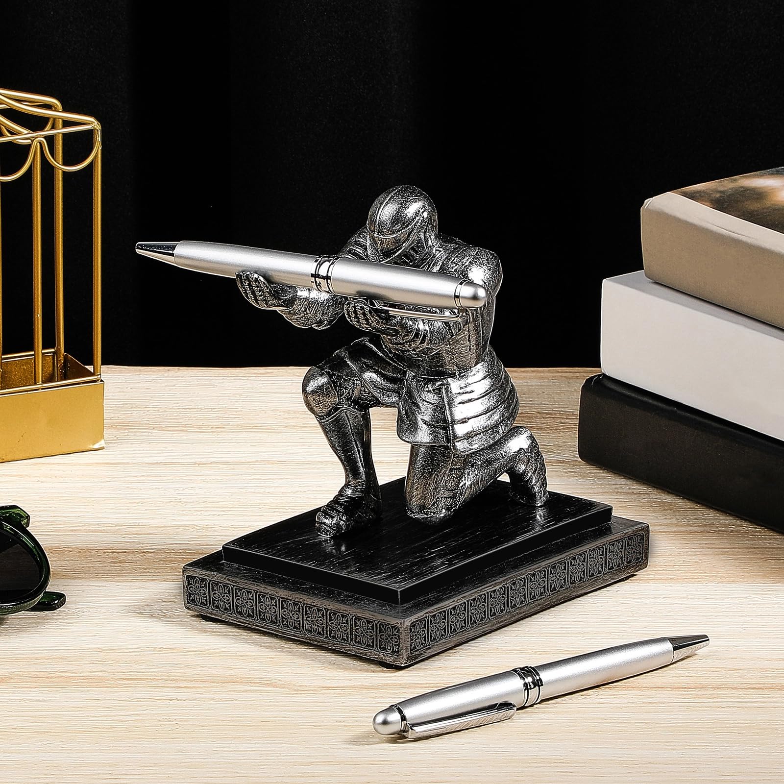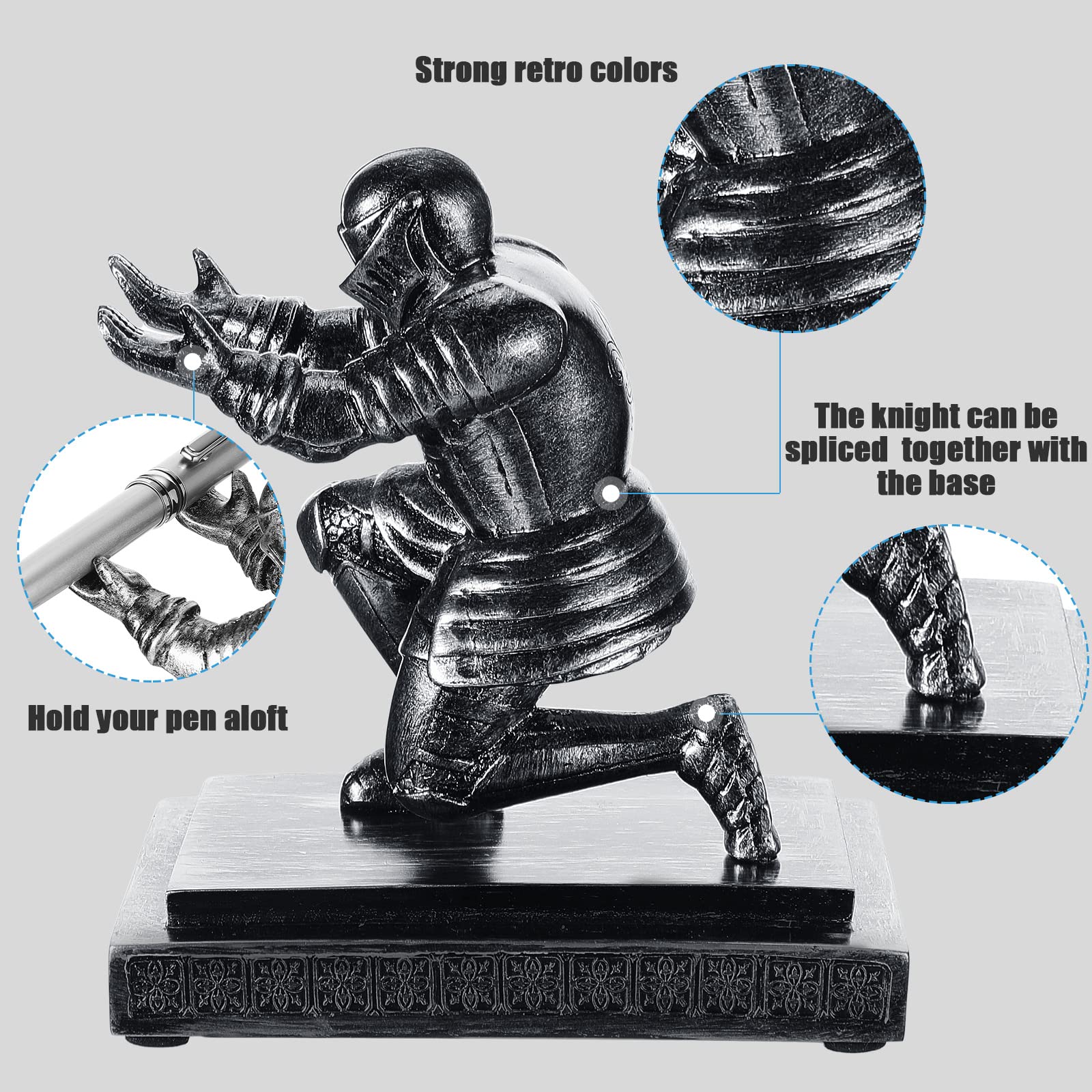 Reliable Material: the pen stand for desk is made of quality resin material, distinctively shaped into the knight image, carefully painted with colors that are hard to fade, also sturdy and reliable for accompanying you for a long time