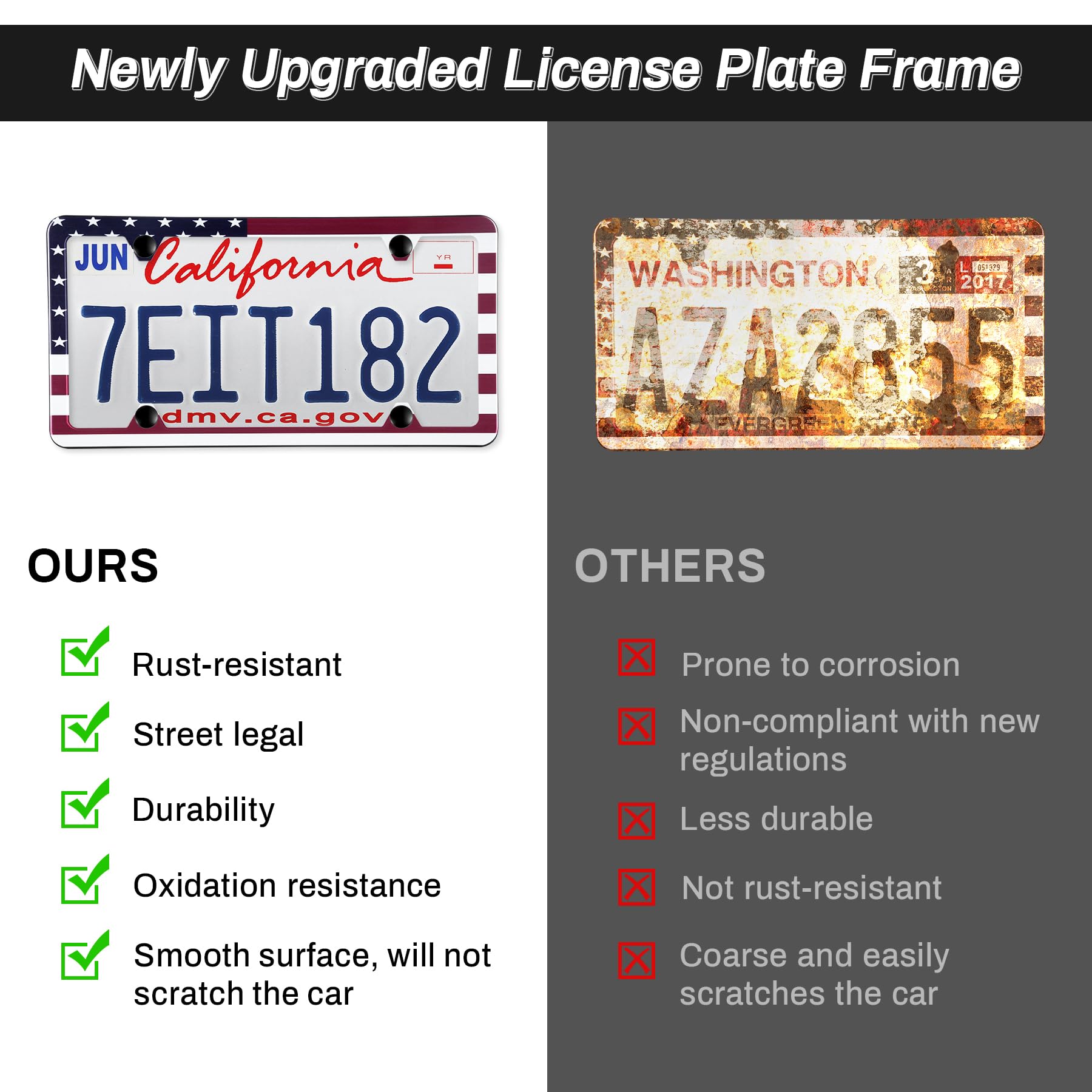 【Easy Installation】:The 4-hole license plate frame is suitable for your car, truck and all types of trailers. Four (4) fasteners are required to secure the license plate and frame protector, which can better protect the license plate from deformation. Some cars have only 2 holes, so be sure to check the vehicle before ordering.