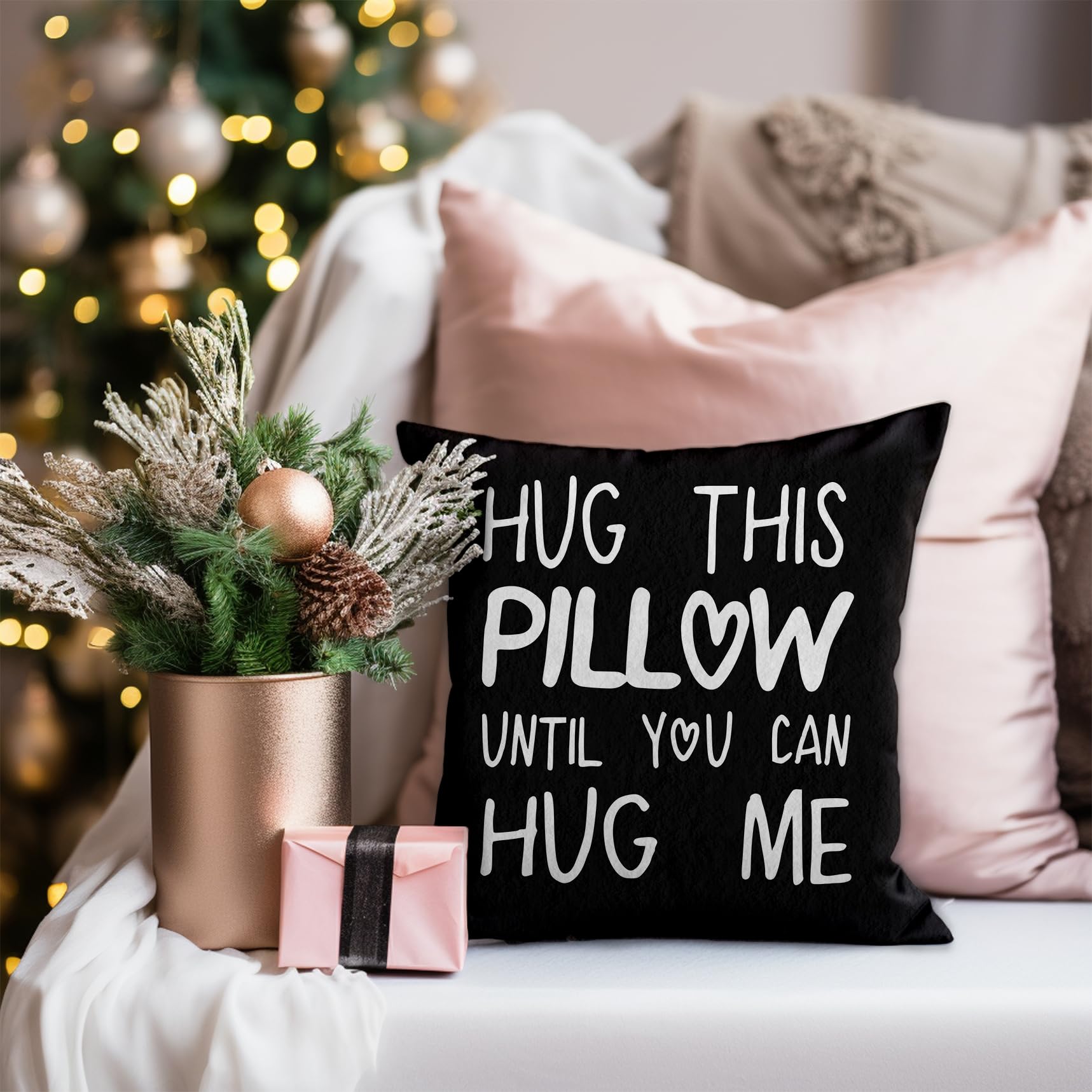 The "Hug This Pillow Until You Can Hug Me Throw Pillow Covers" are heartwarming 18x18 inch pillow covers designed for couples in long-distance relationships.