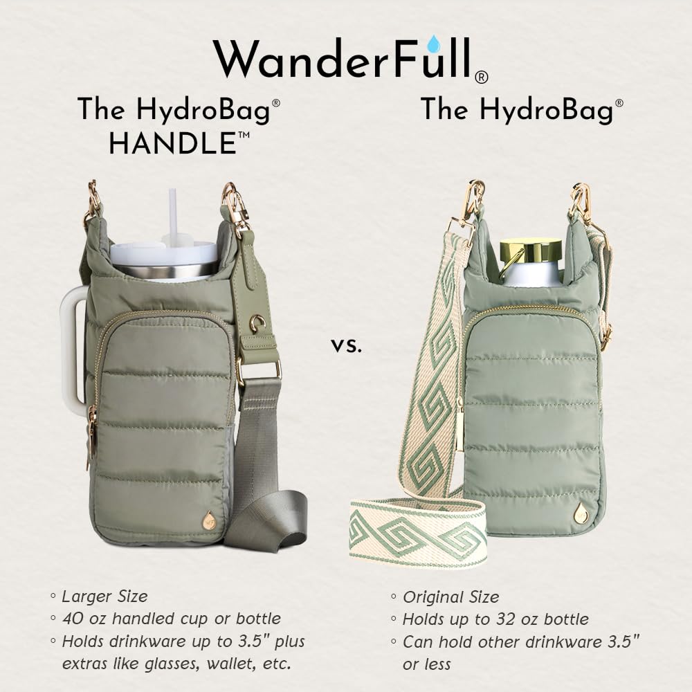 STAY HANDS-FREE & HYDRATED: Carry your bottle effortlessly with the patented WanderFull HydroBag HANDLE. Ideal for sightseeing, festivals, sports events, traveling, or walking the dog. Water bottle not included.