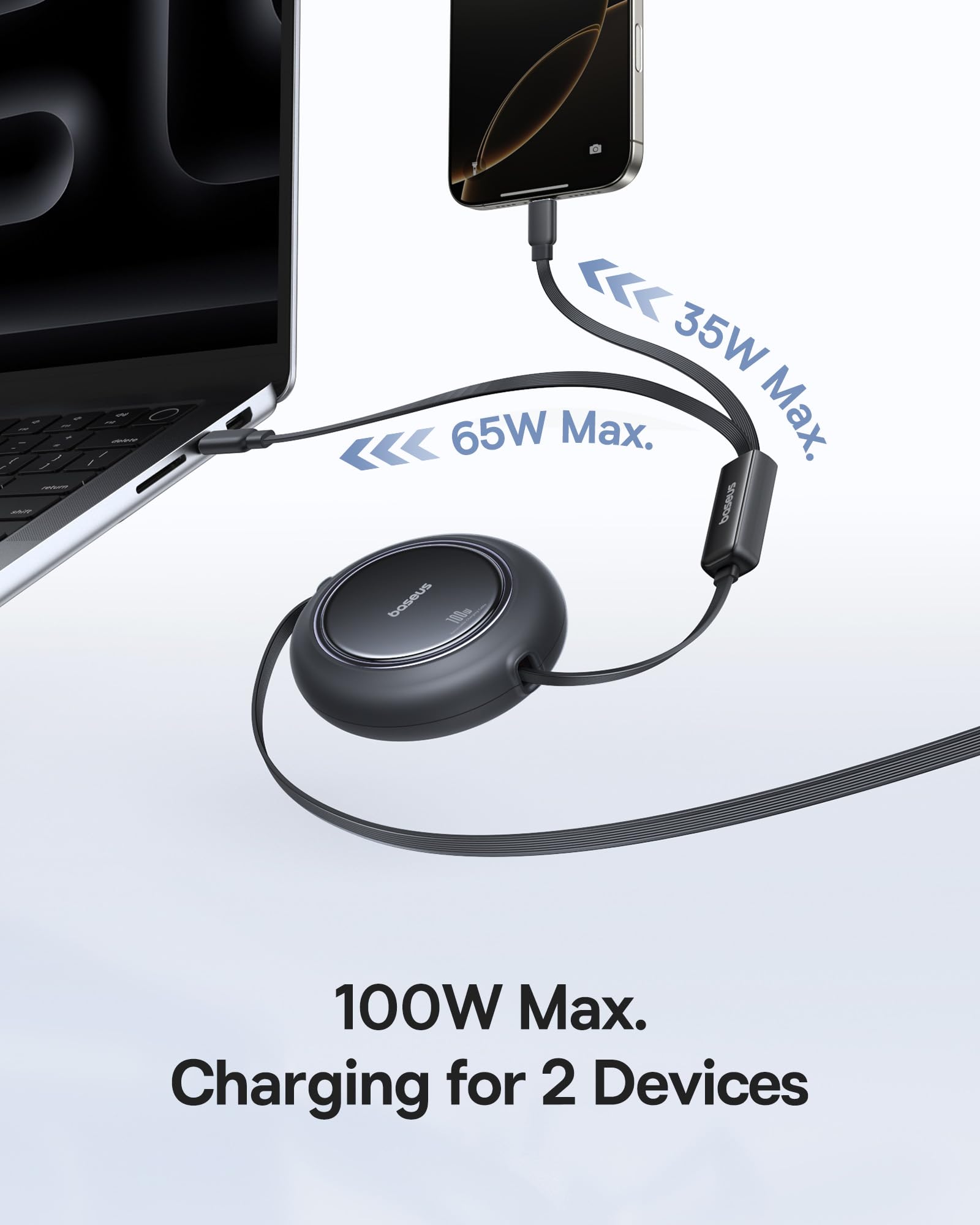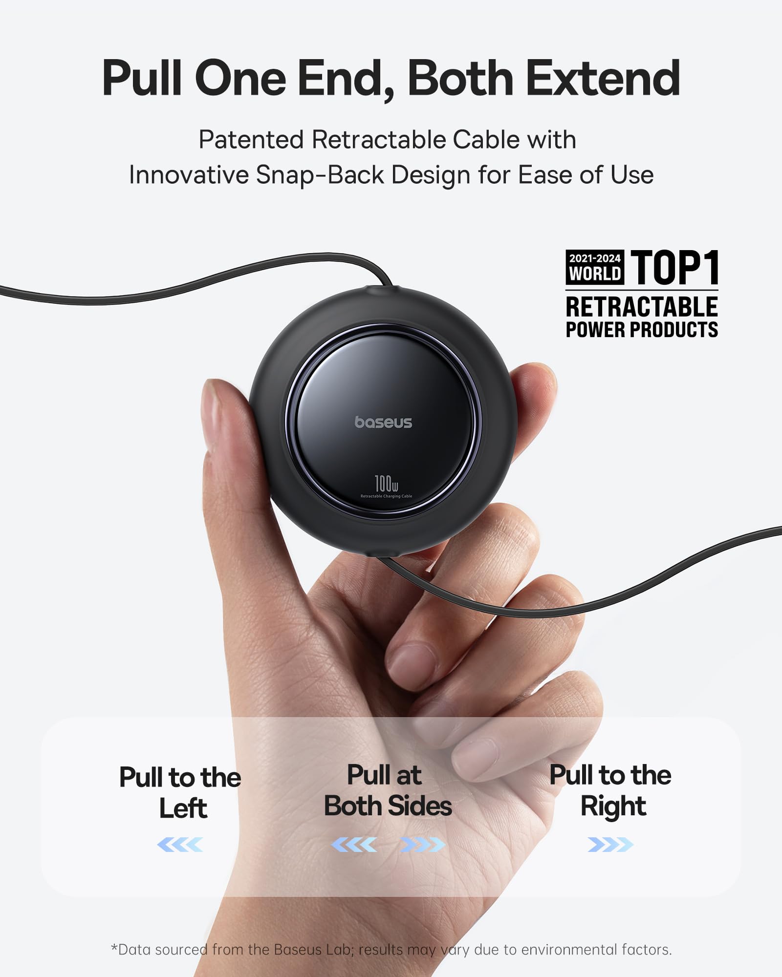 Retractable on Either Side: With a patented design, the retractable charging cable can be pulled at both ends for convenient charging. And you can pull again to retract for easy cable management.