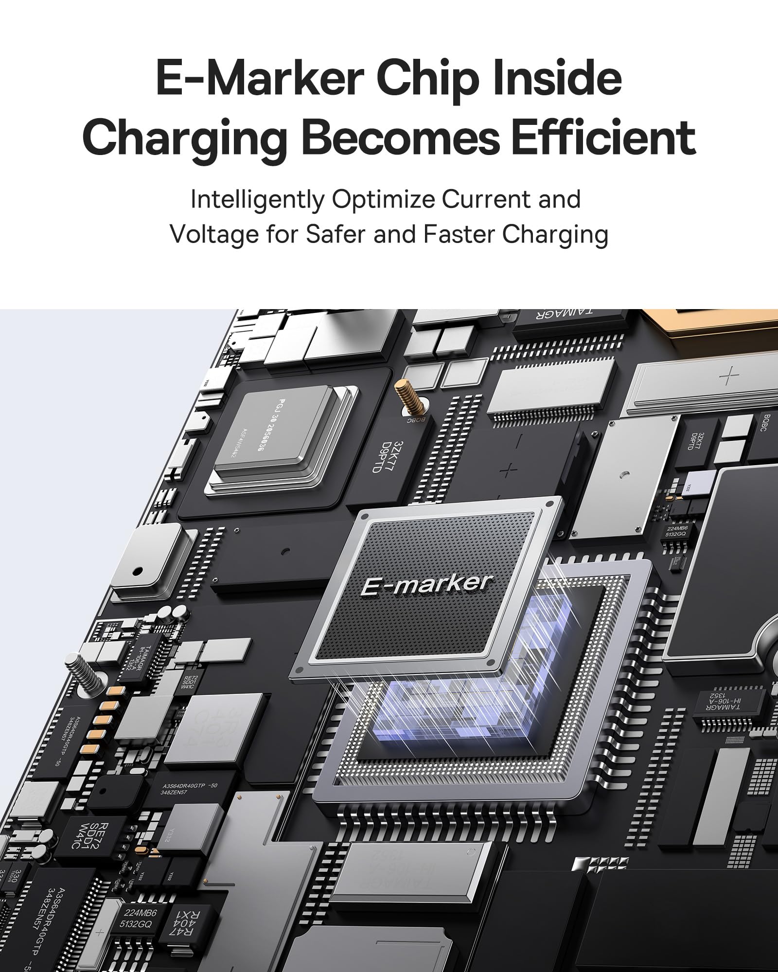 PD 100W Fast Charging: The maximum power output of one fast charging cord Type-C can reach 100W, letting you boost a MacBook Pro to 36% in a 30-minute charge. It is suggested that you use a 100W power adapter or higher for better laptop charging.