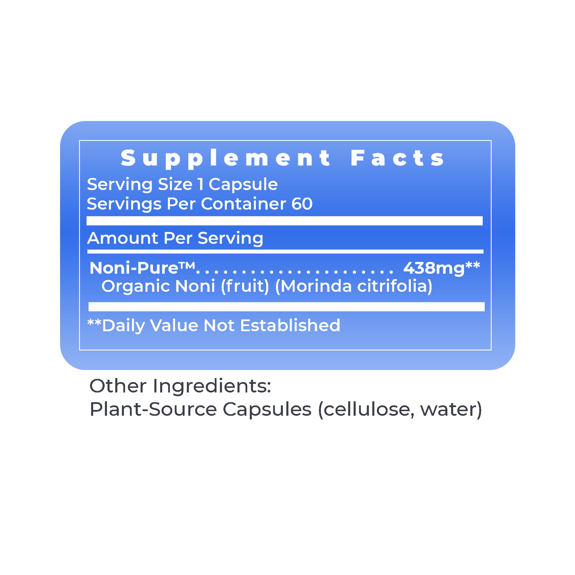 RECOMMENDED USE: For daily gut health, immune health, and energy support, take 1 capsule of our noni fruit supplement 3 times daily, or as directed by a health professional.
