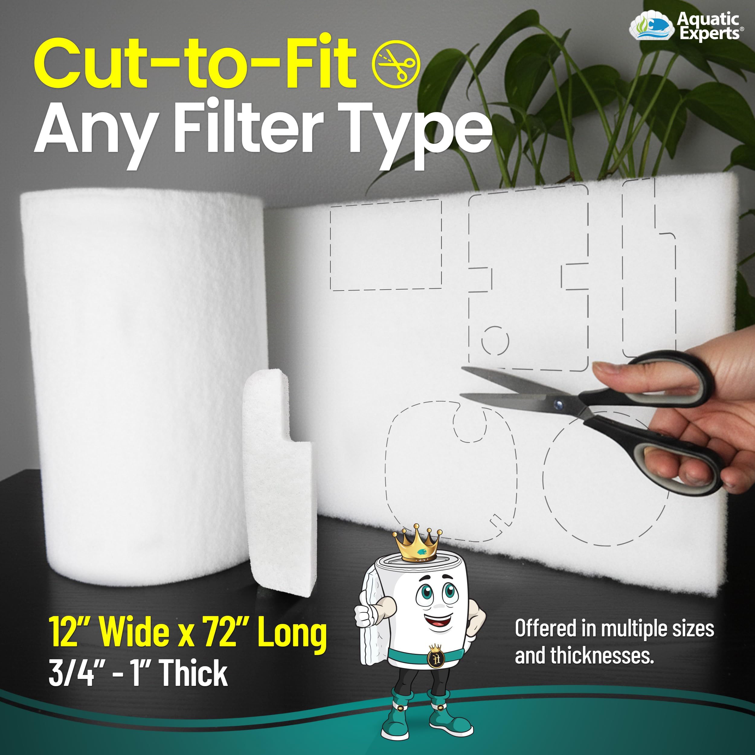 Cut-to-Fit Flexibility – Easily trim the 12" x 72" roll to any filter shape or size for canisters, sumps, or HOB systems.