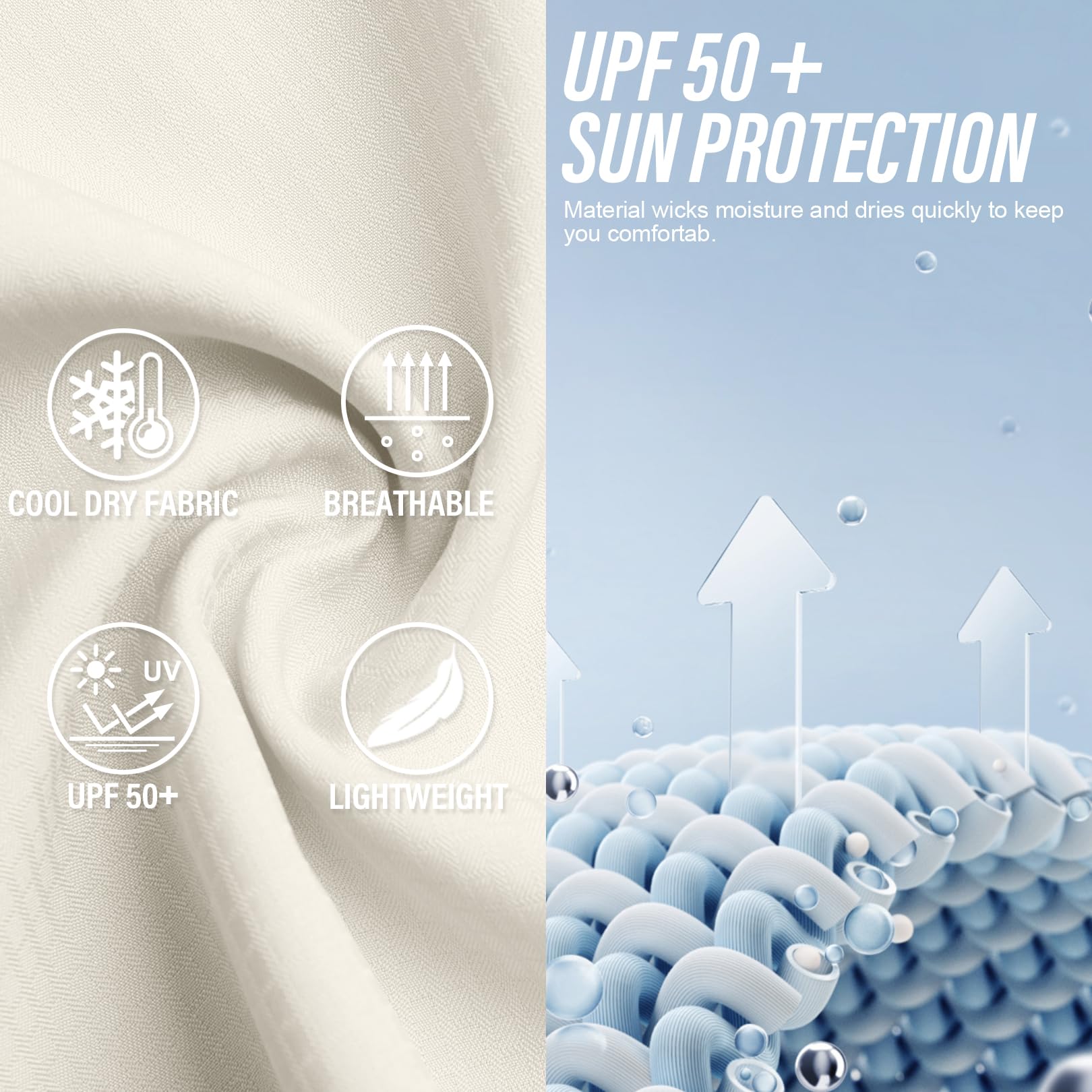 Sun Protection: UPF 50+ fabric provides maximum sun protection against harmful ultraviolet rays and reduces your exposure to harmful UVA/UVB radiation, when you are fishing,cimbing or travelling.