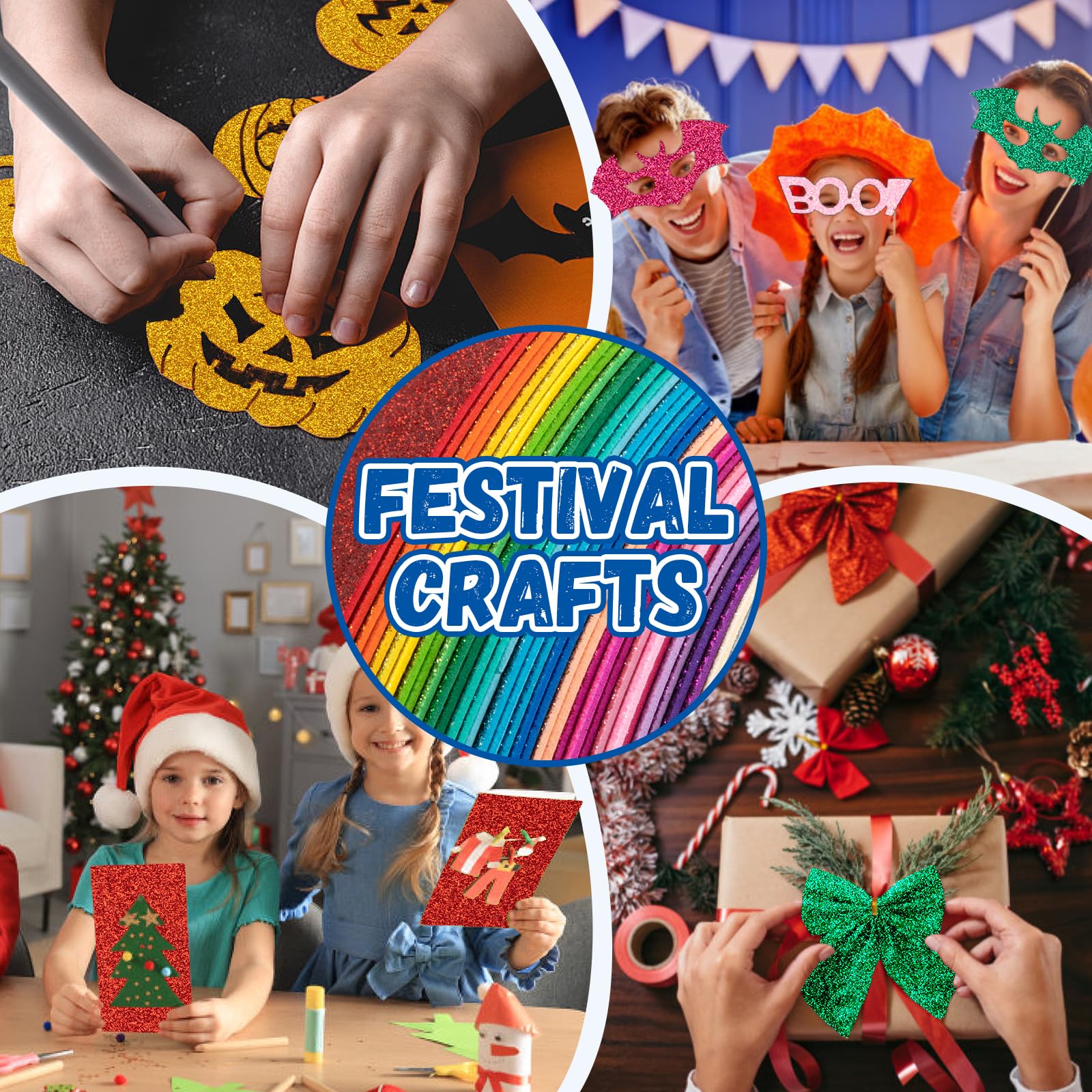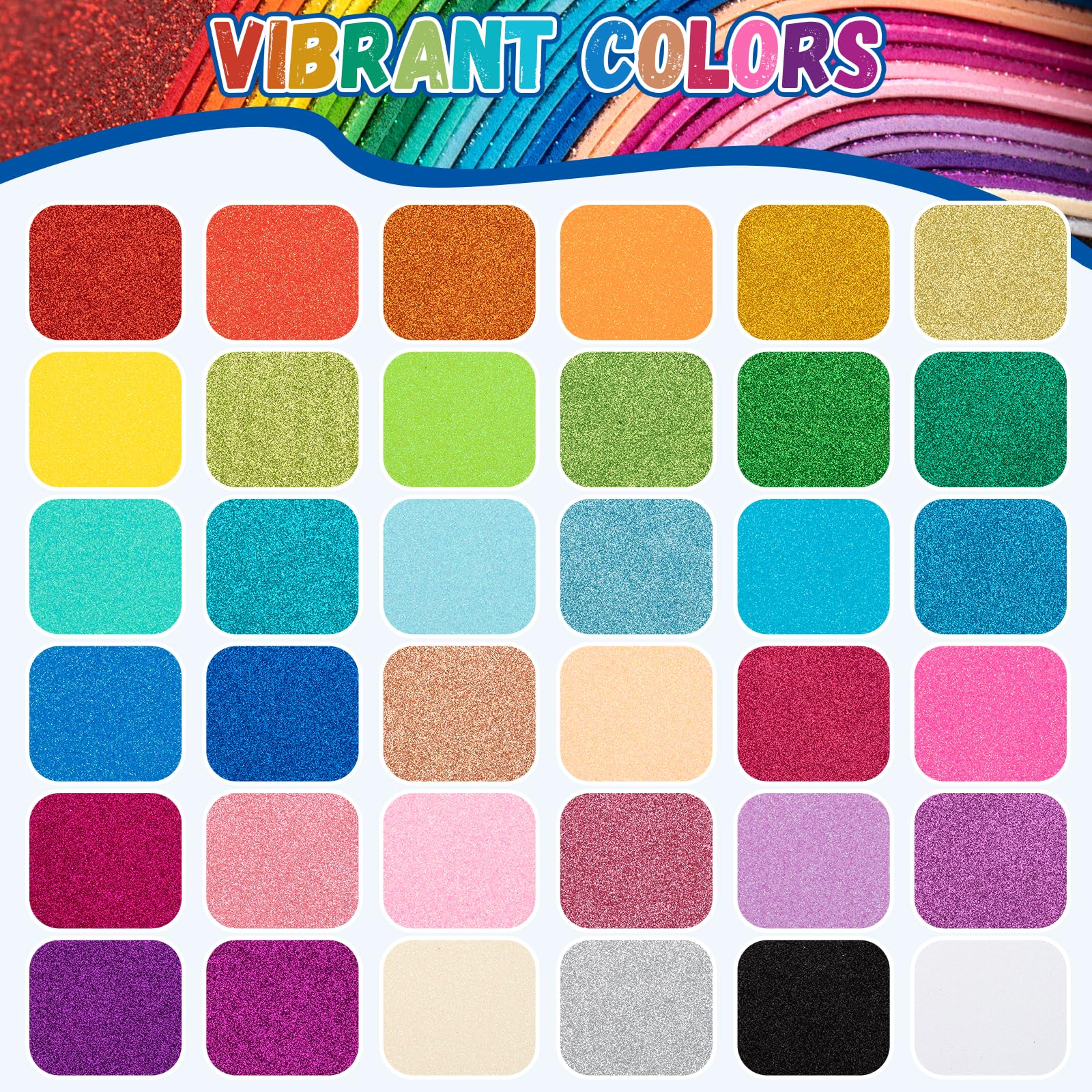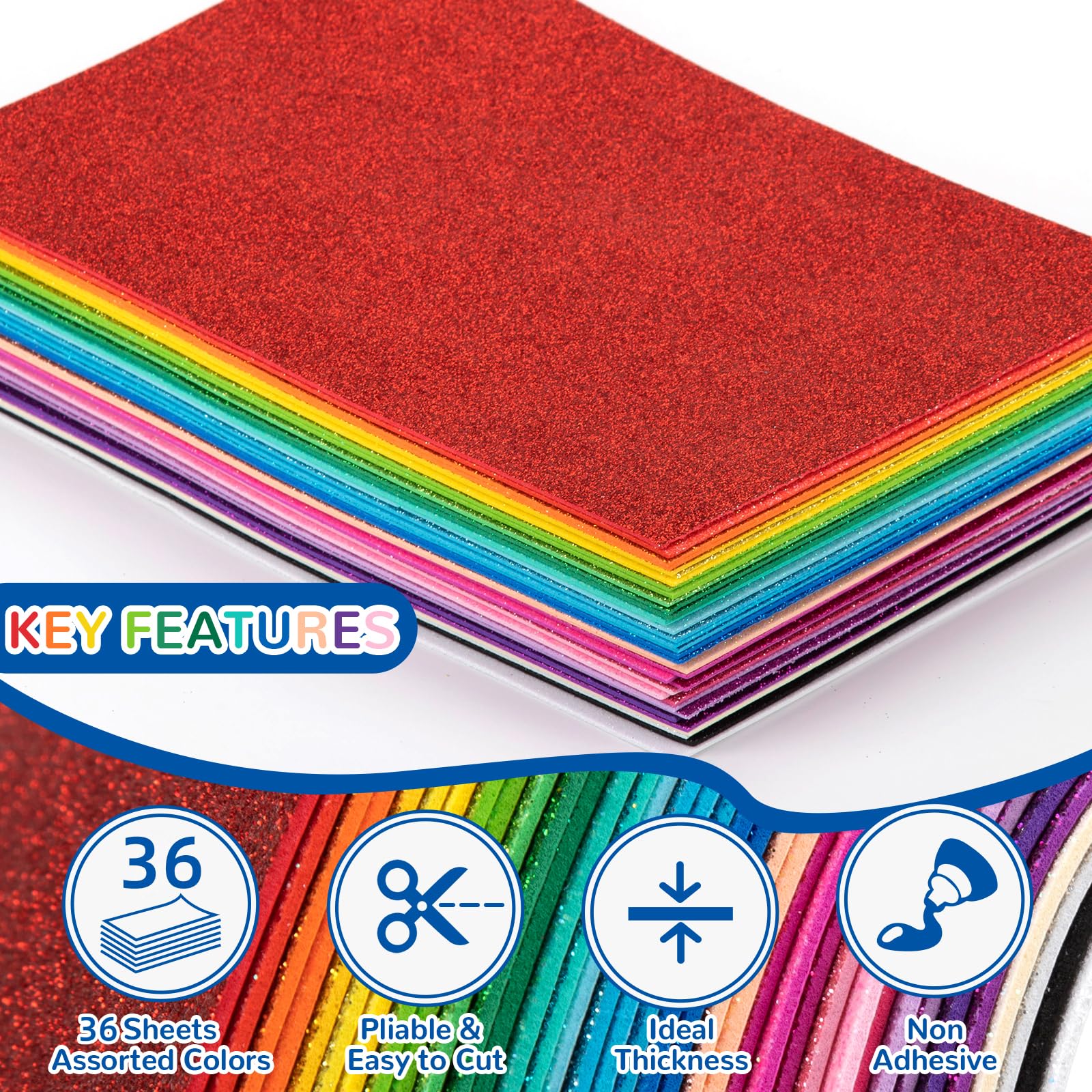 【Package Includes】 Each package comes with 36 pcs multicolor glitter foam sheets. The foam paper is made from a layer of shiny powder.