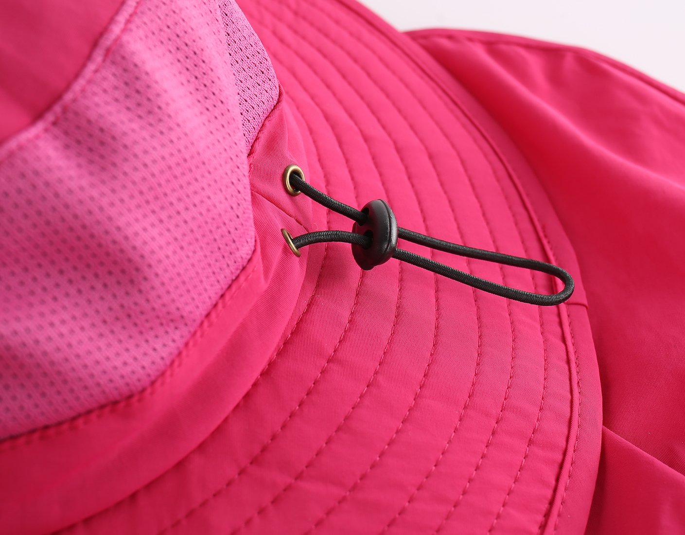 Wide brim and mesh vents for cooling airflow through the crown,moisture wicking sweatband & adjustable chin strap