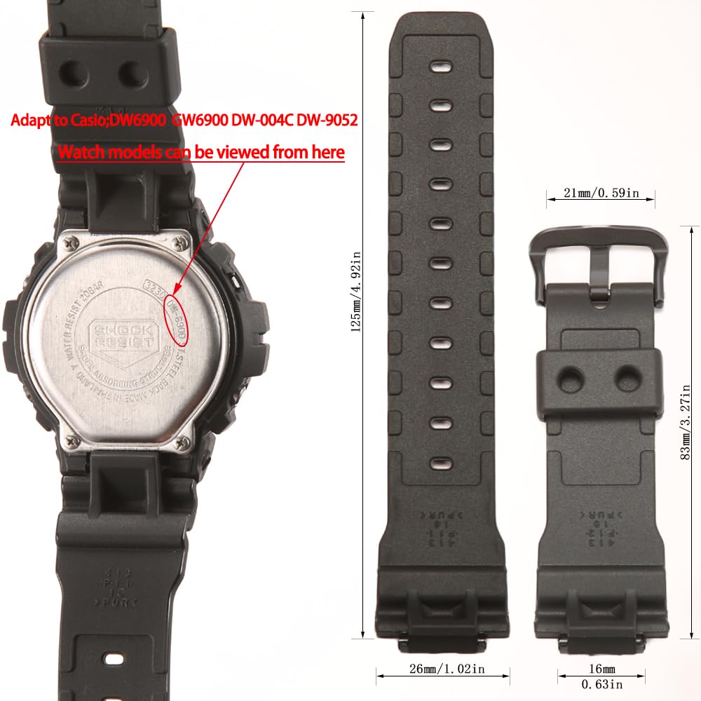Description Natural Resin material, safe and assured, Compatible with Casio DW-9051 DW-9052 DW-004C DW6900 series model watch band,Not suitable for other models