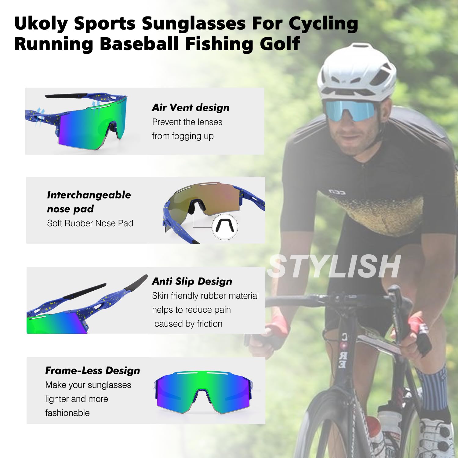 Ventilation System : The Ukoly Sports Sunglasses have an excellent ventilation system with vents on the lenses and legs. This ventilation system not only prevents the lenses from fogging up, but also makes them more breathable.