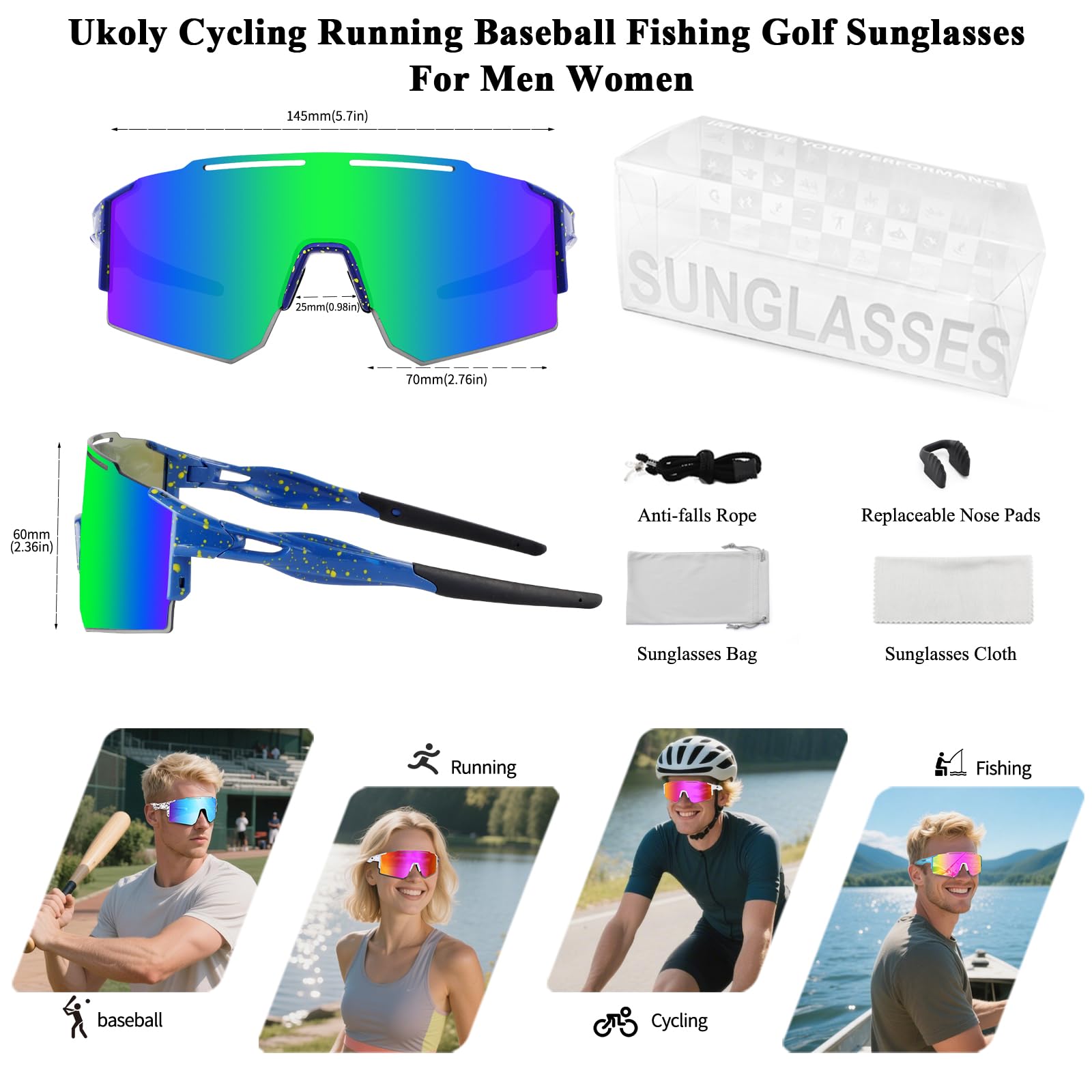 Anti Slip Design : The legs of the Ukoly Sports sunglasses are made of non-slip rubber, which makes it harder to fall off during exercise. However, during strenuous exercise, we recommend that you wear the anti-slip cord that comes with your sunglasses.
