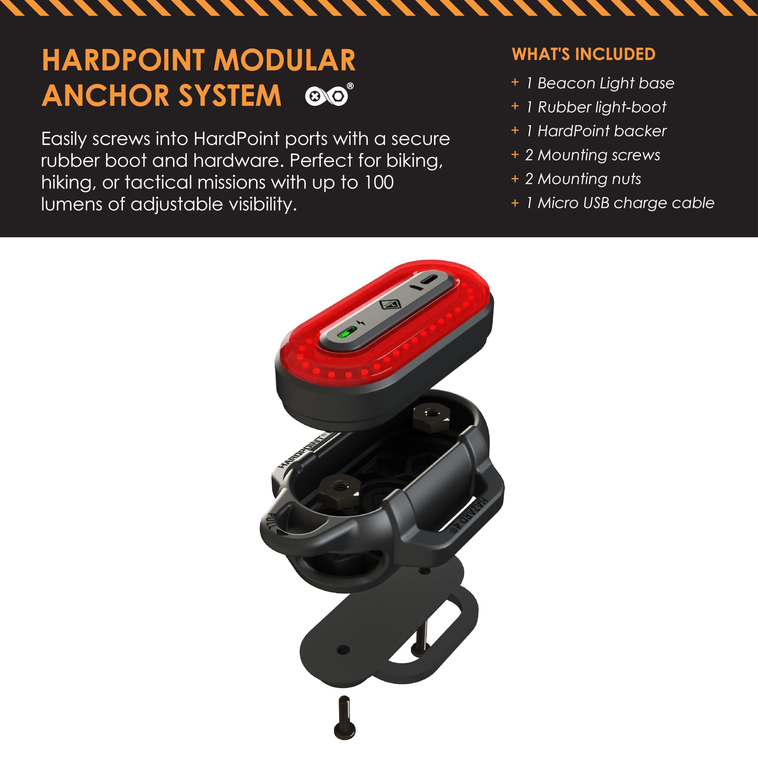 COMPREHENSIVE BEACON LIGHT KIT - The Beacon Light Kit-B includes a LED core, rubber boot, Hard Point backer, screws, nuts, and a USB charge cable, offering everything needed to mount and use this portable, rechargeable beacon light. Ideal for both professional and recreational use, including safety lighting for trucks, vehicles, and emergency situations.