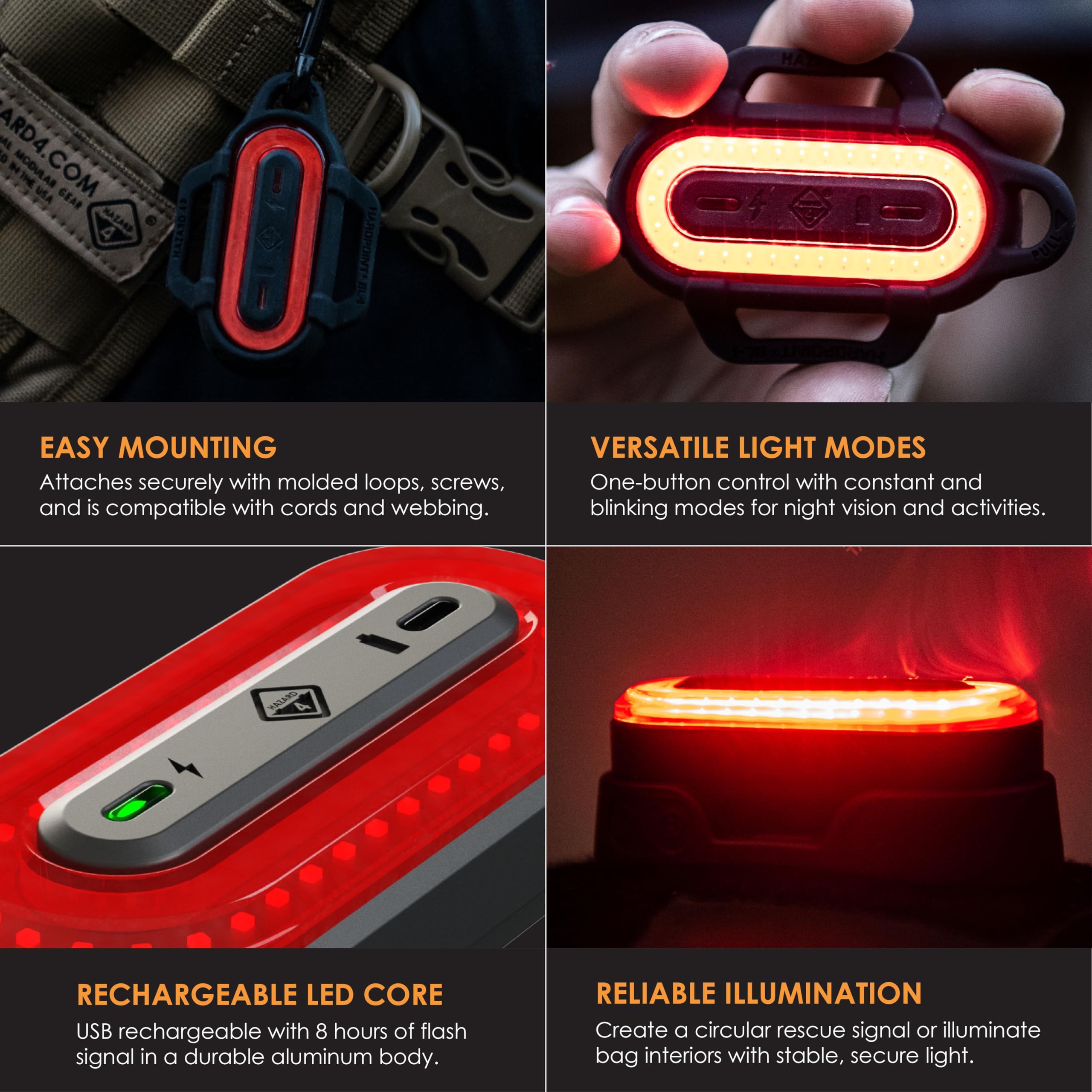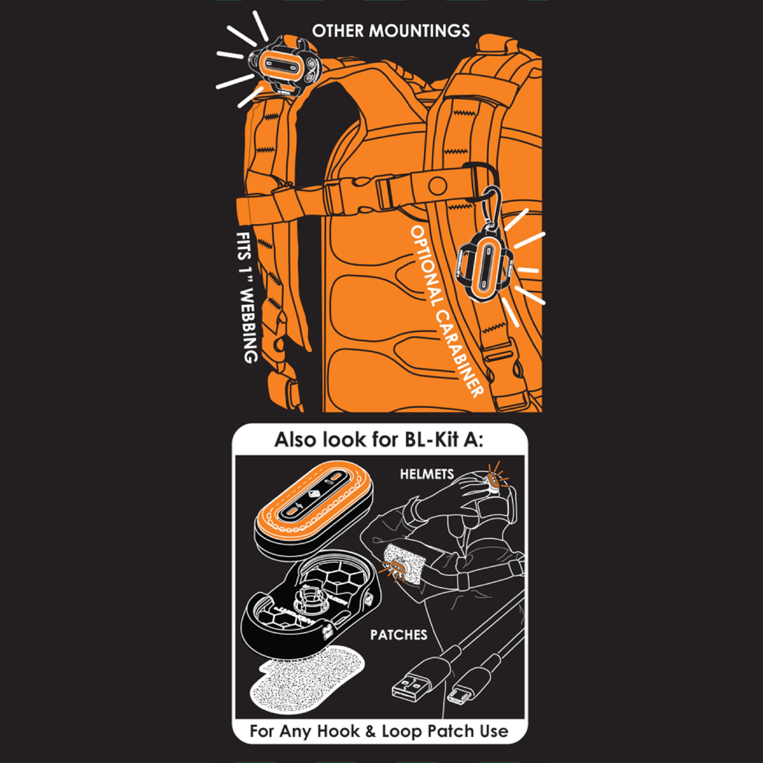 MULTI-MOUNT LED BEACON LIGHT - Mount the Beacon Light Kit-B on Hard Point ports using its durable rubber boot and hardware, or easily attach it to cords, carabiners, and webbing. This versatile, flashing safety light is perfect for security, emergency response, or recreational use, ensuring high visibility on the go.