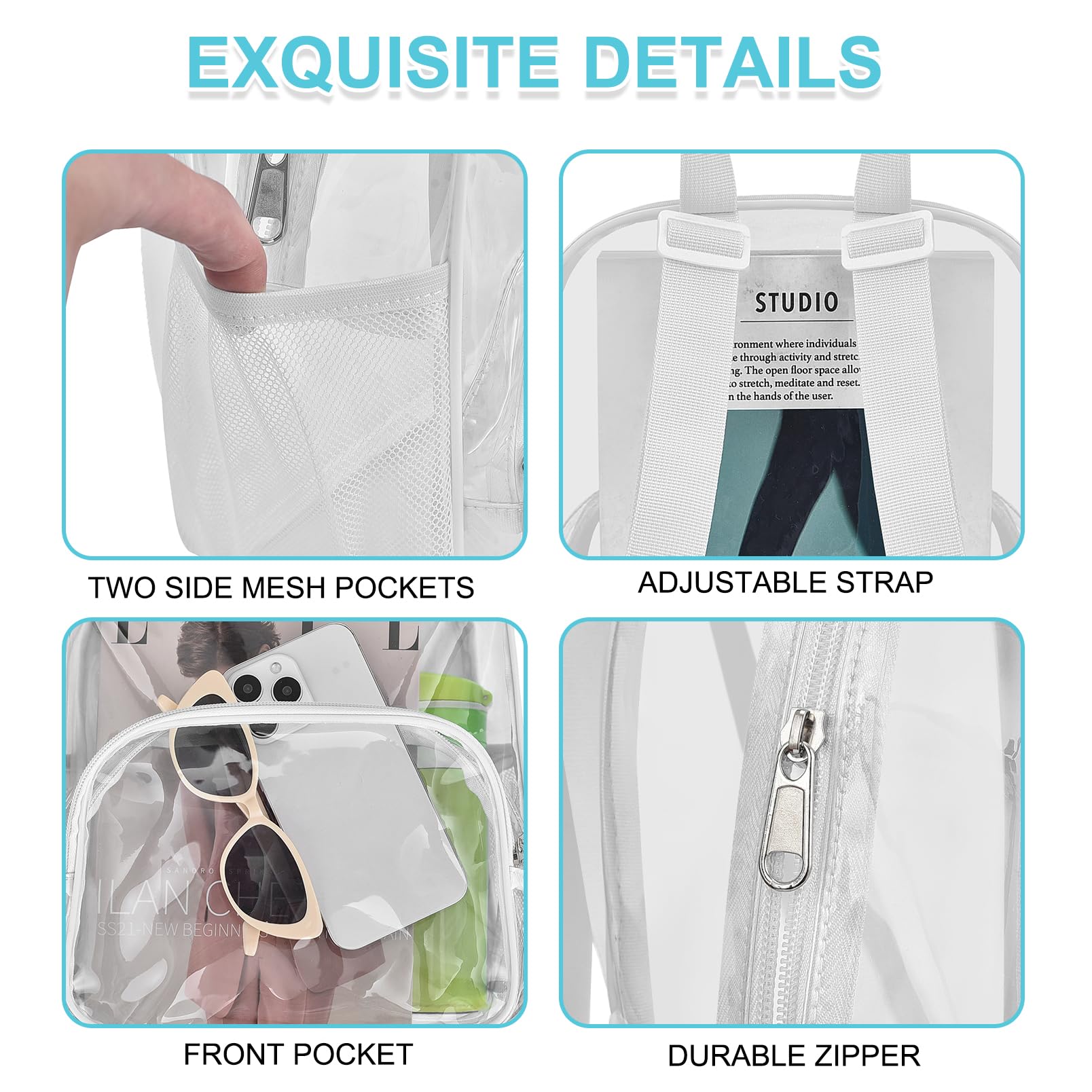 【Versatile Use】: Clear backpack is ideal for women's concert outfits, festivals, work, and sporting events. It's also great for travel and other events with clear bag policies.