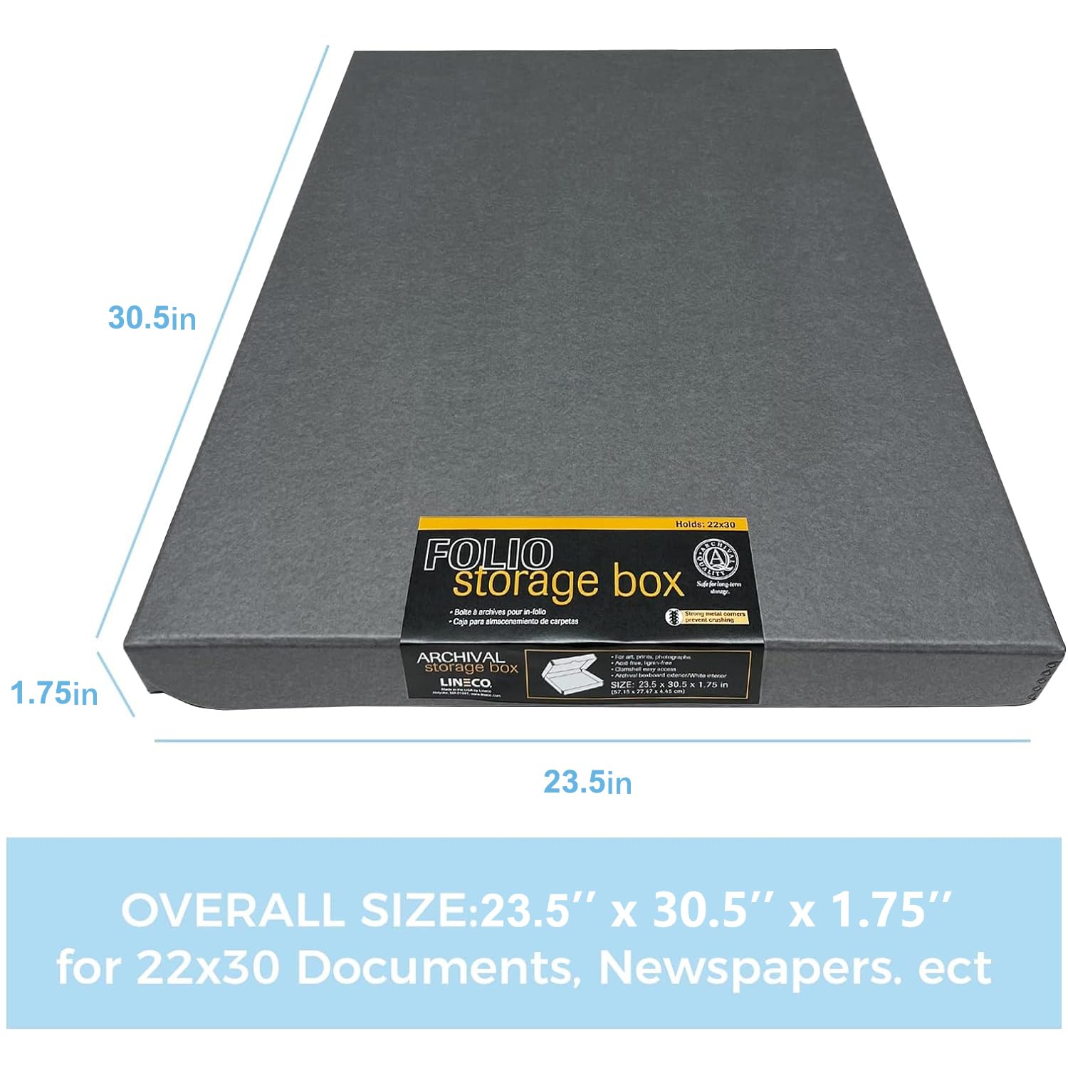 Overall Size: 23.5"x 30.5"x 1.75" fits up to 22" x 30" Documents, Newspapers, Certificates, Delicate Pictures, Important Prints, or Old Photos