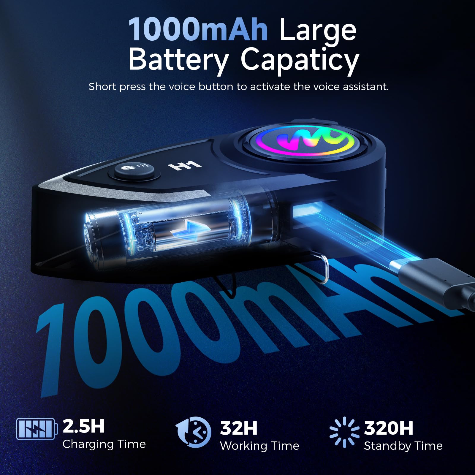 【One-lick Operation, Hassle-free Riding】The motorcycle headset is designed for simplicity and convenience. In addition to the automatic reconnection function, H1 also makes riding operations easy with its intuitive and minimalistic one-click operation, including one-click pairing, voice assistant wake-up, answering calls, etc. Allowing you to stay focused on the road while effortlessly managing your audio.