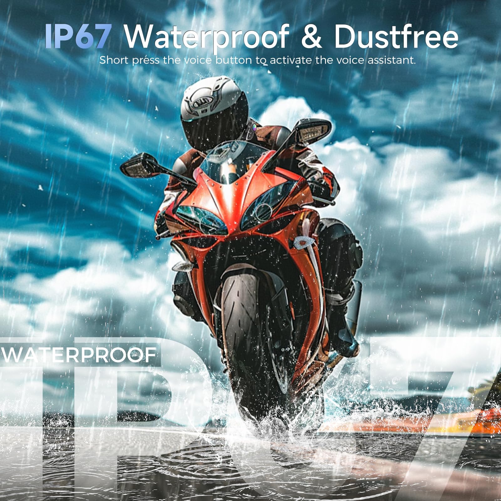 【IP67 Waterproof & Dustfree】Moman H1 intercom system is highly adaptable to various weather conditions, with IP67 waterproof and dustfree. Perfect for most open face, modular and full-face helmets, it is built to withstand tough conditions like dust,rain,storm,snow and low temperature.Ideal choice for motorcycle and snowmobile riders.