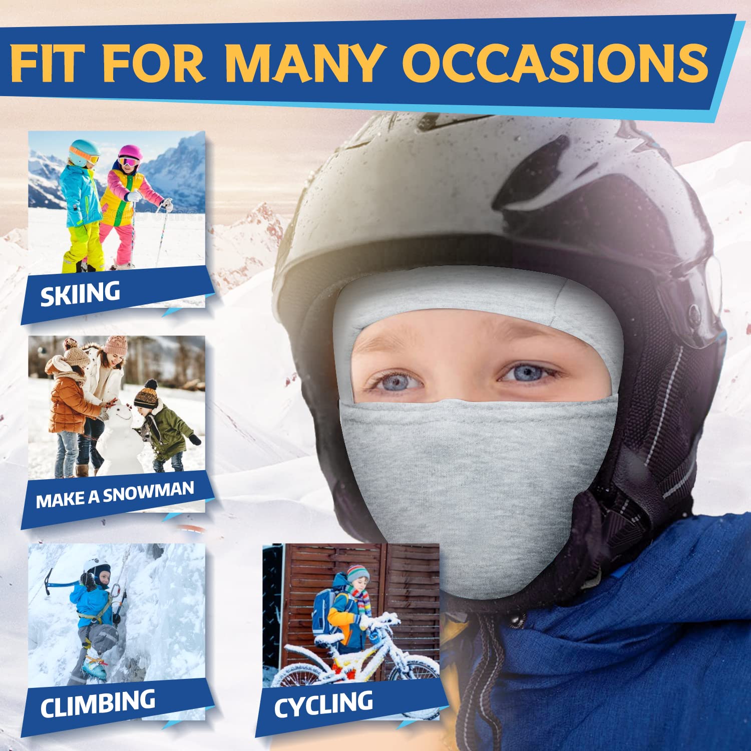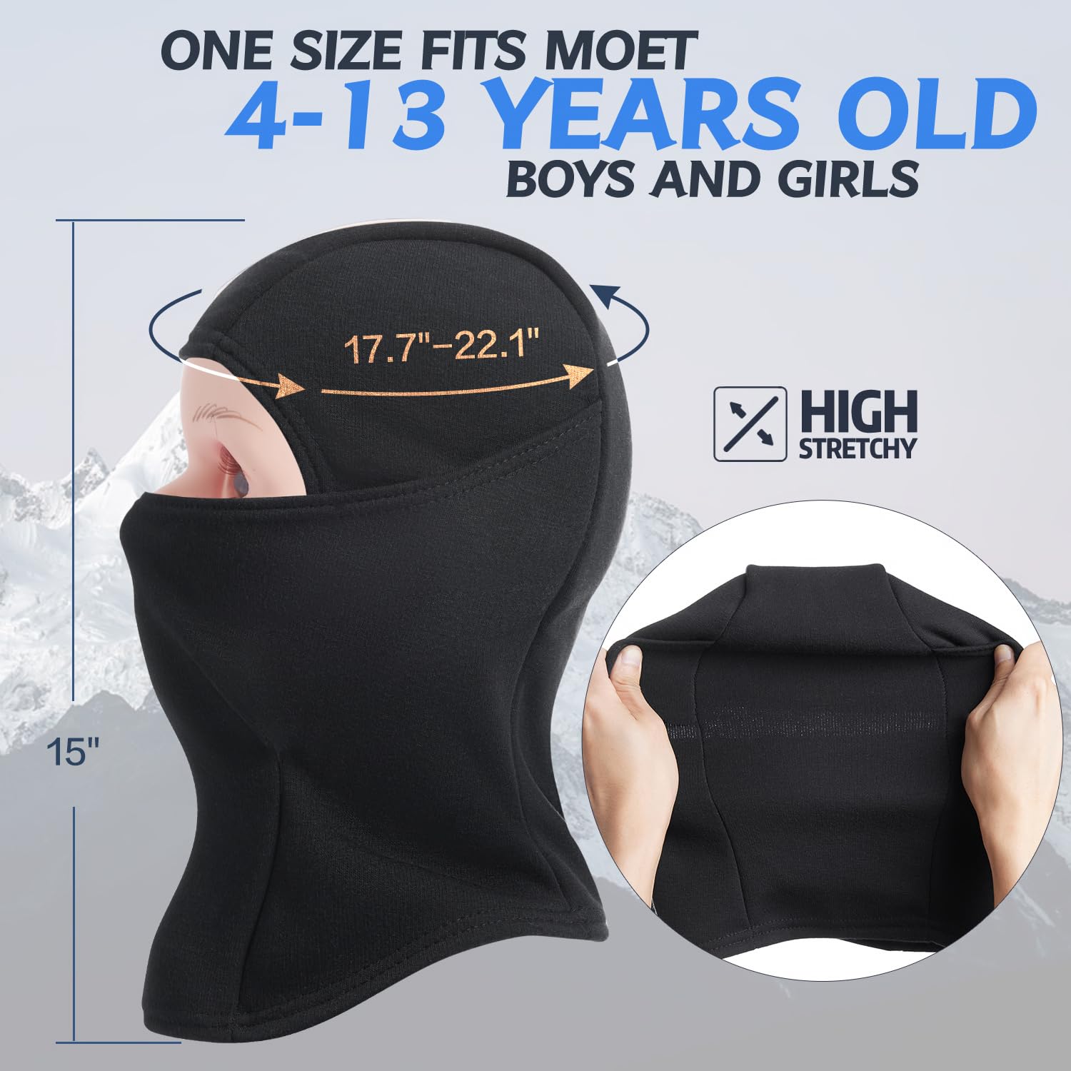 【ONE SIZE&Good Elasticity】:This face warmer mask is with great elasticity and one size fits most 4-13 years boys & girls whose head circumference about 45-56cm/17.7-22.1in. Designed for kids and designed for the cold weather day.