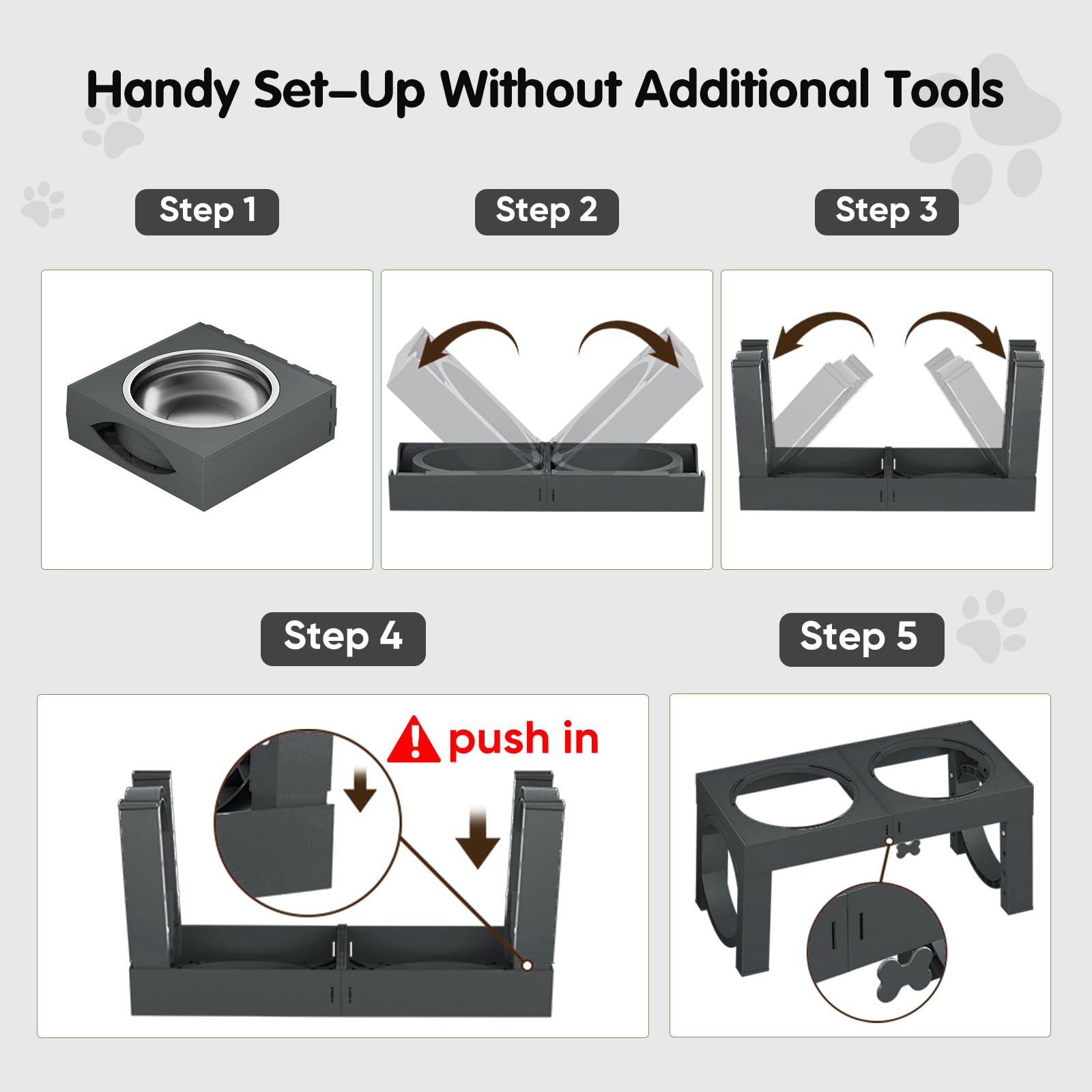 ADJUSTABLE HEIGHT RAISED DOG BOWLS: Our raised dog bowls for large sized dog can be adjusted to four different heights 3.15'' 9.09'' 10.63'' 12.20'' 13.78'', suit for all breeds and ages. Designed for large dogs, the maximum adjustable height is approximately 1.58 inch higher to fit large dogs needs.
