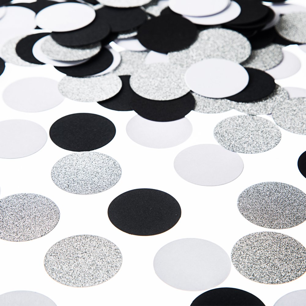 Color: Paper Confetti Circle Dots, black, white, glitter silver