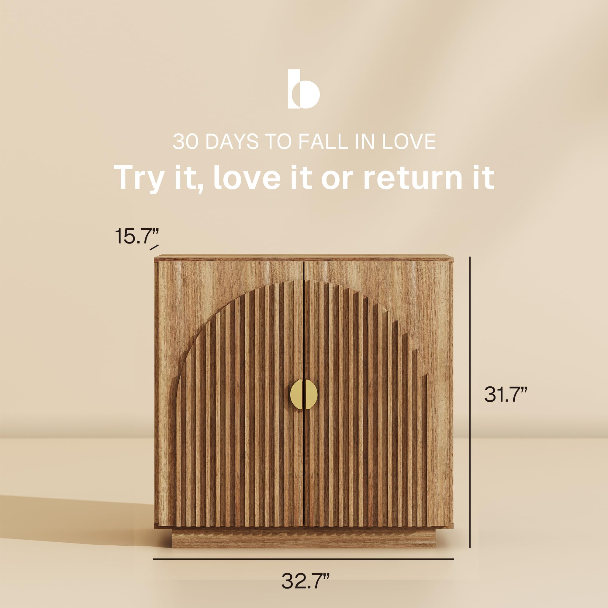 Elegant Arched Design & Exquisite Handcraft: The BELLEZE Buffet Cabinet with Storage features symmetrical arched door panels, with flowing curves and hand-nailed decorative strips that create a layered, modern, and elegant look. The golden semi-circular handles complement the overall design. This fluted sideboard cabinet is perfect for adding both style and function to your home.