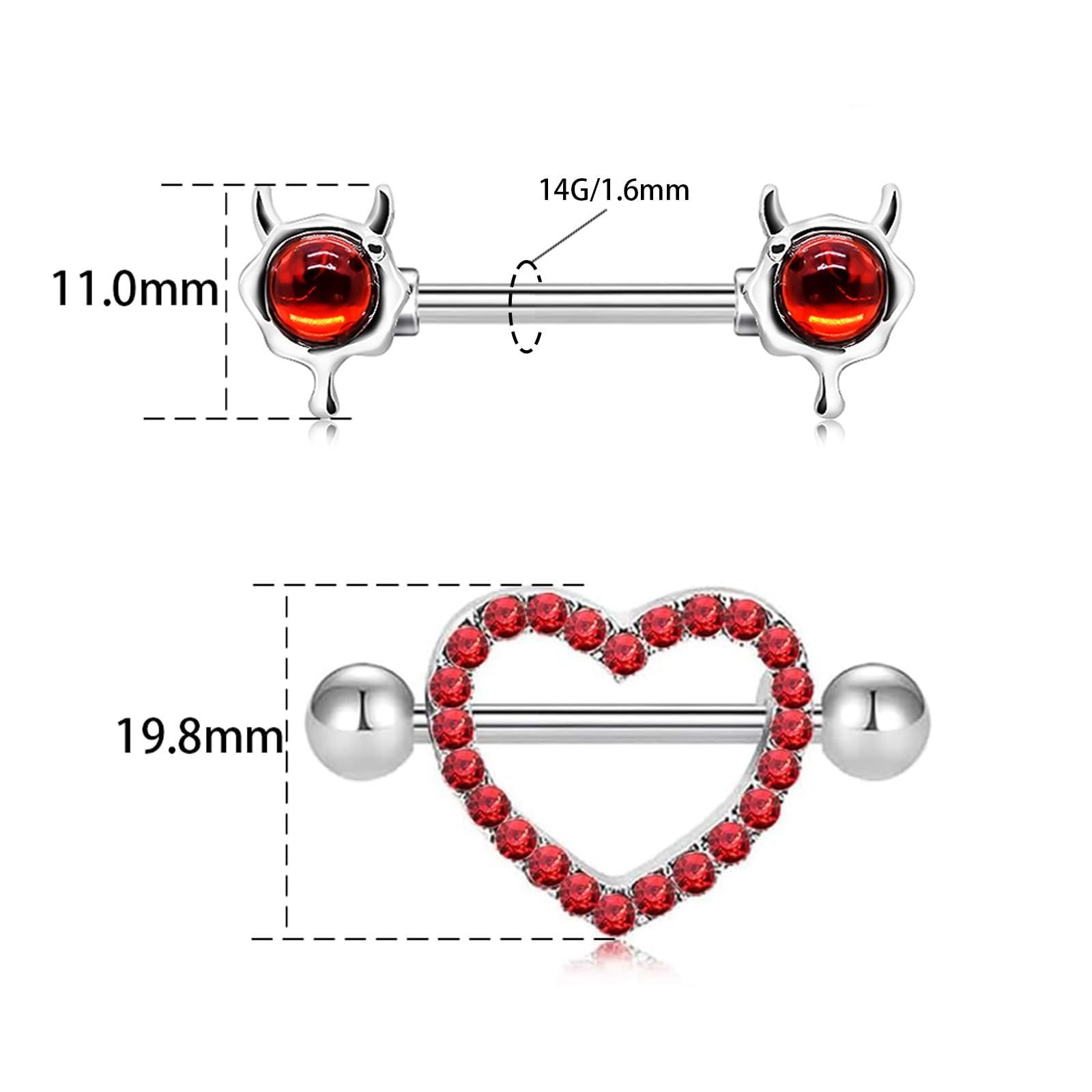 Product Style:14G Heart,Devil etc CZ nipple barbell design sexy jewelry for women.