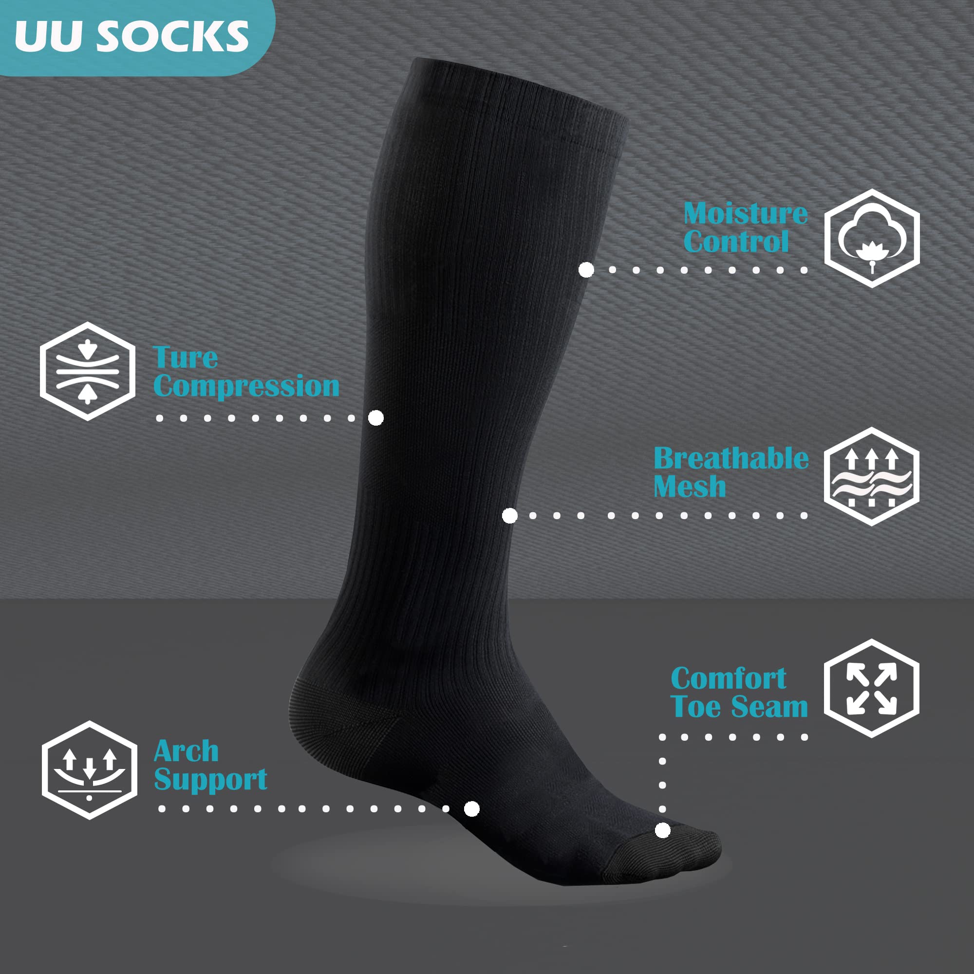 【3 SIZES & UNISEX】 – From Size Small to XX-Large, UUSOCKS provide more options to both women and men. Our compression socks begin with a technical advantage that provide a unique fit and feel unlike any other socks. They are designed to fit snug in order to help prevent bunching or pinching and reduce the risk of blisters. Please use our sizing chart as a guide. If you are in between sizes, we generally suggest you go up to the bigger size for maximum comfort.