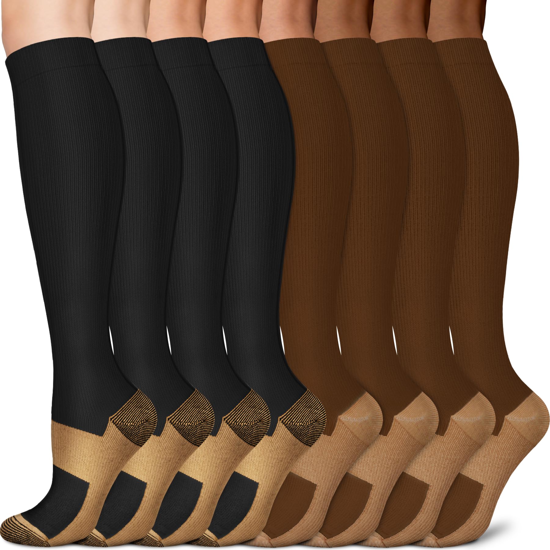 Copper Compression Socks - 8 pairs of quality socks with unique color combination,it is perfect for 8 working days without daily wash, Through our socks, we are extending its natural property to rejuvenate blood circulation through your legs through copper fibers capable reviving blood circulation along with providing a 15-20 mmHg compression.