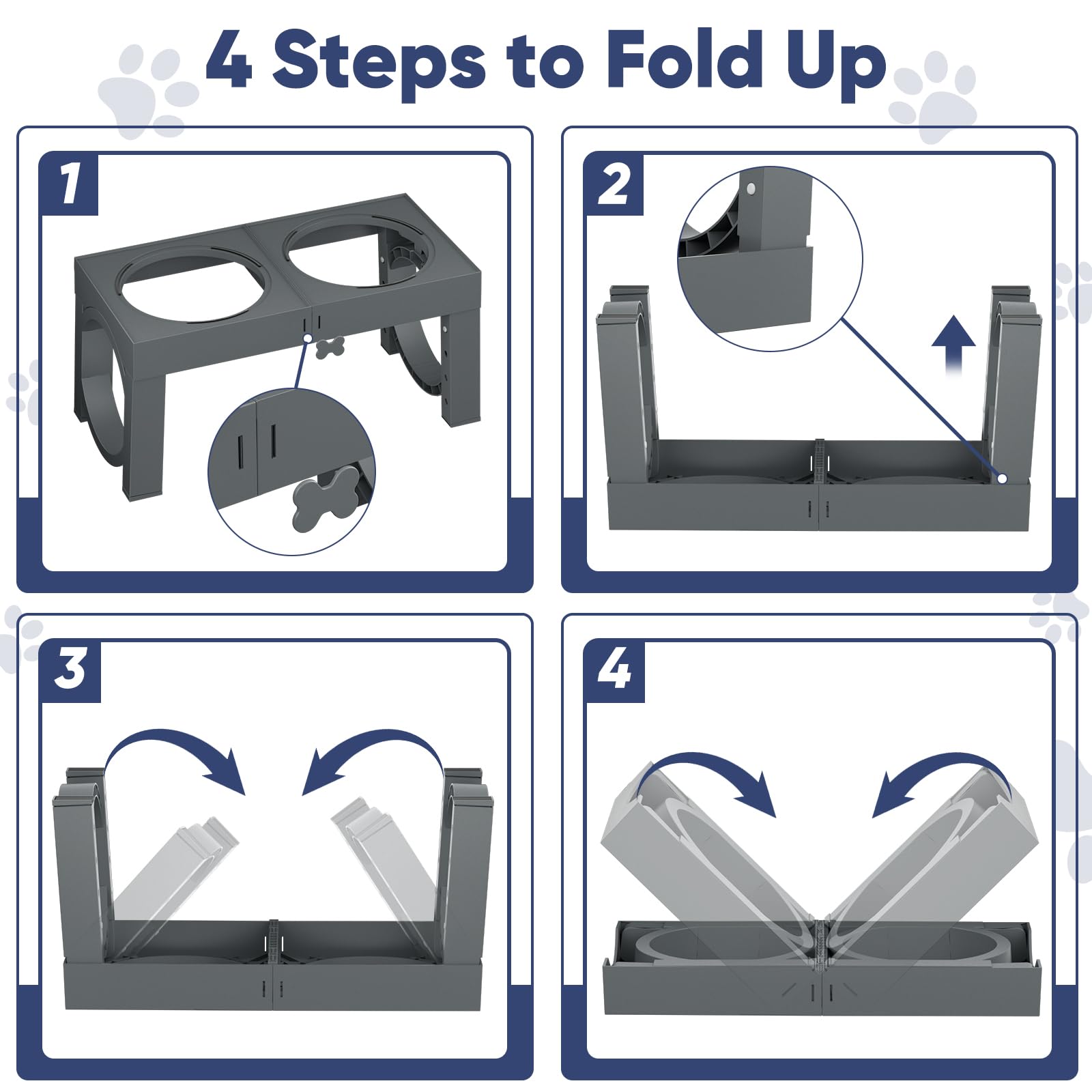 4 ADJUSTABLE HEIGHT RAISED DOG BOWLS: Our raised dog food bowls can be adjusted to 4 different heights from 3.15'' to 9.09'', 10.63'', 12.20'', 13.78'', suit for all life stages. Designed for large dogs, the maximum adjustable height is approximately 1.58 inches higher than other elevated bowls.