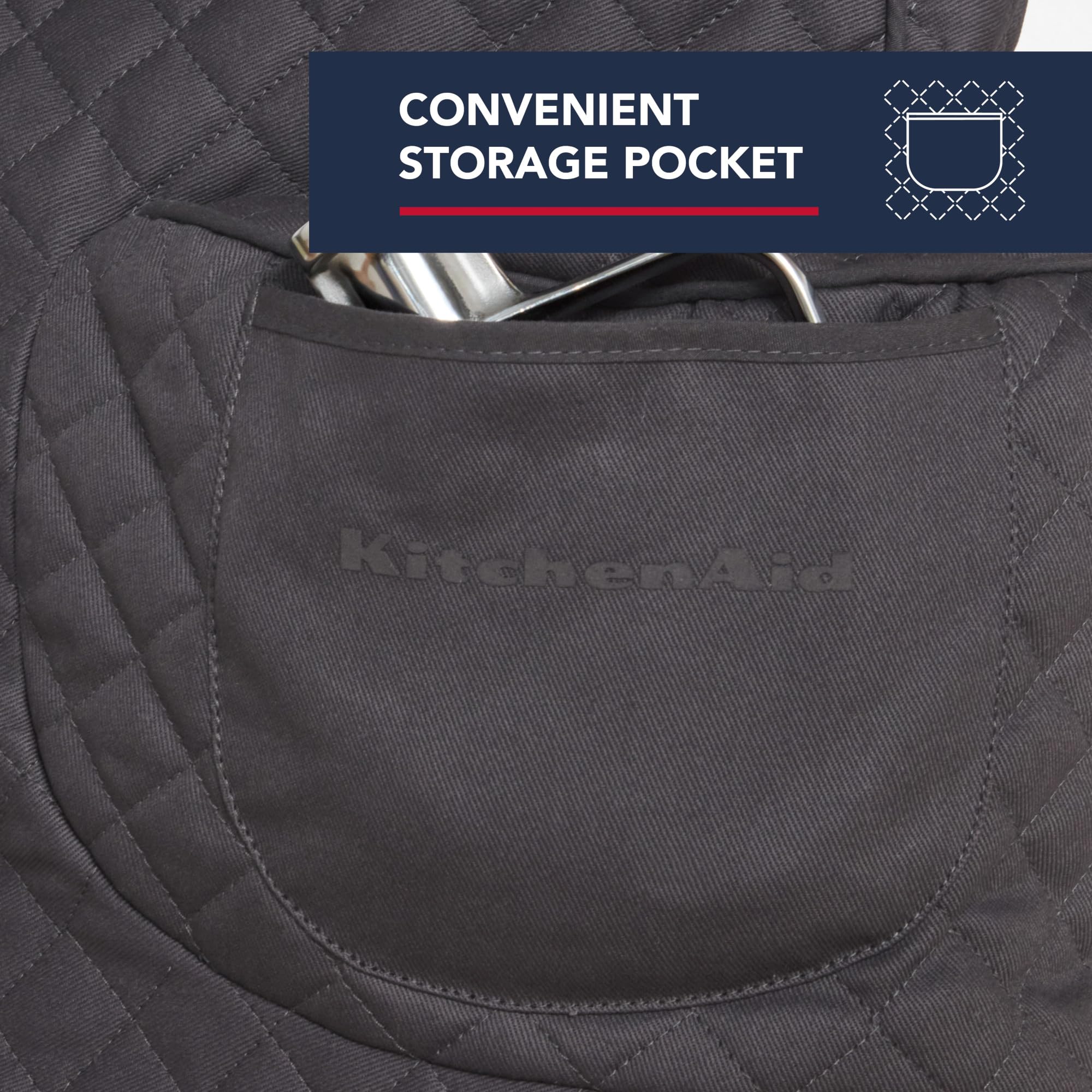 Protect and store your KitchenAid Tilt-Head Stand Mixer neatly and in style with the KitchenAid Fitted Tilt-Head Stand Mixer Cover. Made of 100% Cotton, this heavy-duty, quilted mixer cover is designed to protect your KitchenAid Stand Mixer from scratches, damage, and dust while it’s not in use. It features a convenient front pocket that's perfect for storing Stand Mixer attachments and your favorite recipe cards. This mixer cover is compatible with all KitchenAid Tilt-Head Stand Mixers using a standard 3 to 5qt stainless steel bowl. It’s also machine washable for easy care.