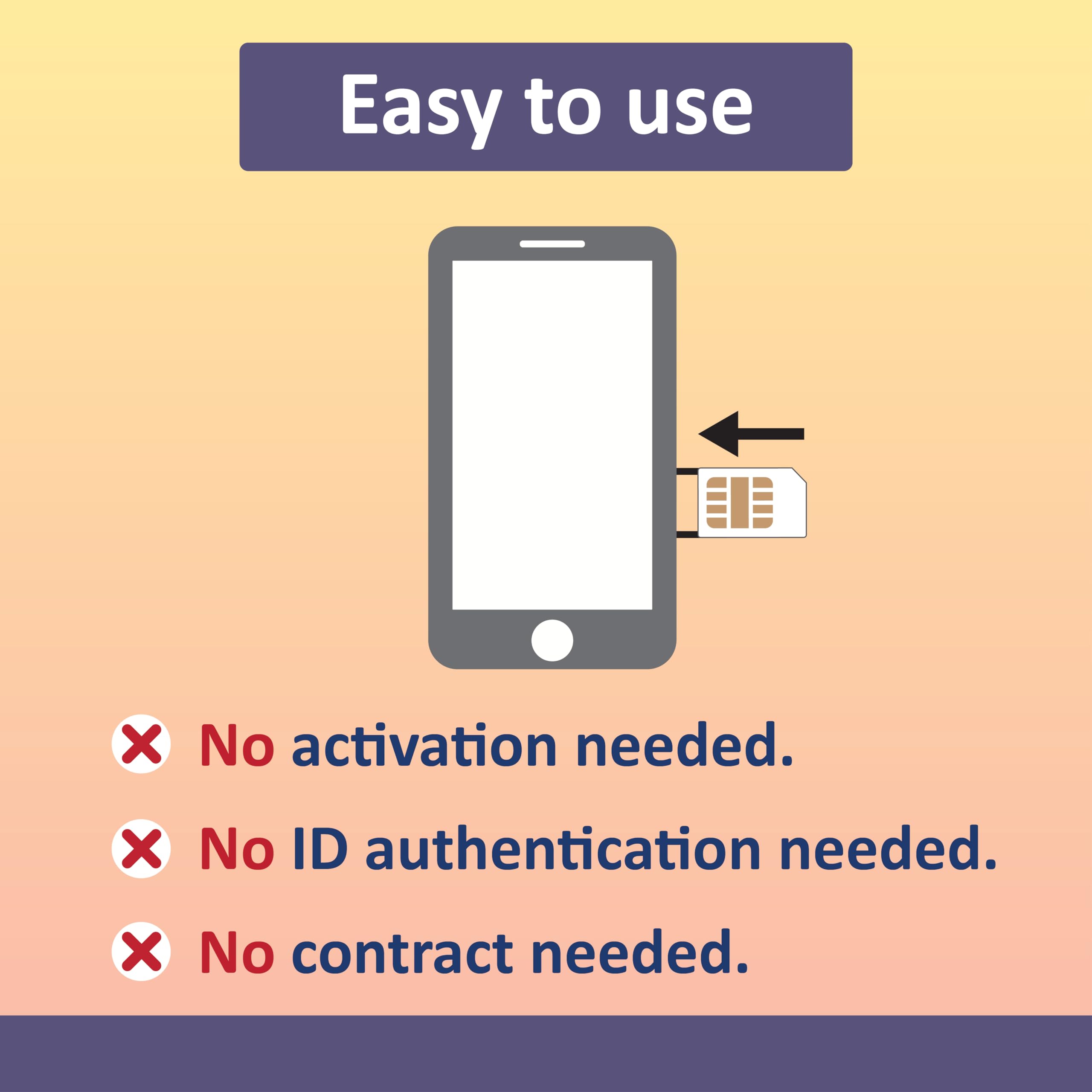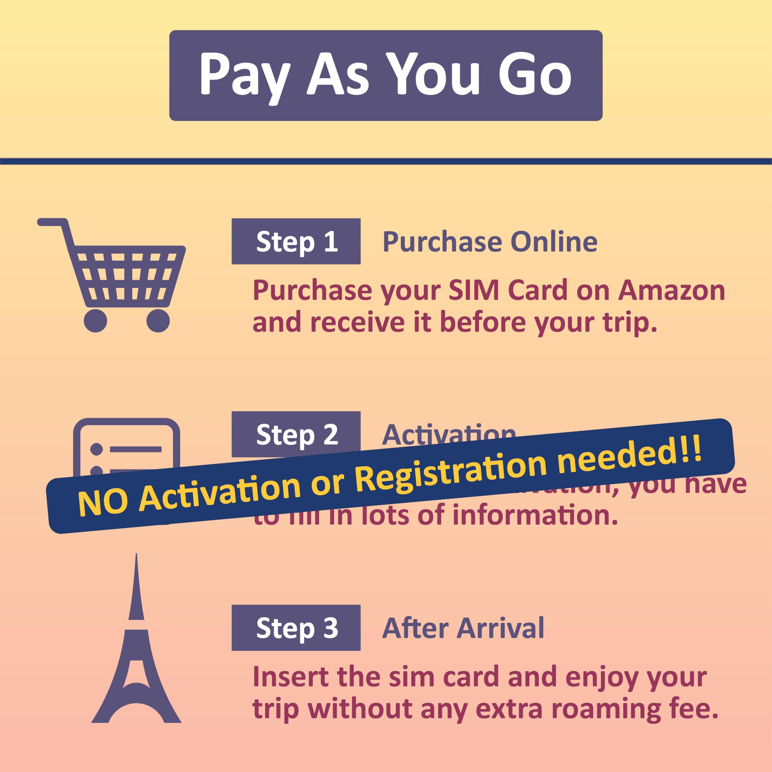 No Activation or registration is needed, simply insert the SIM into your unlocked device and it will be ready to use!